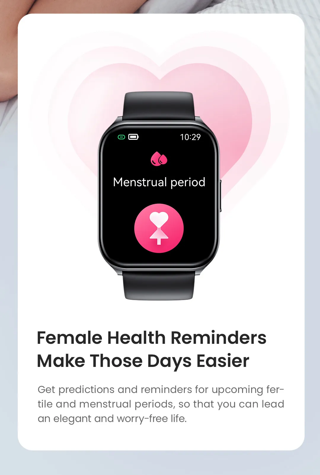 - Lightweight, comfortable strap for all-day wear.