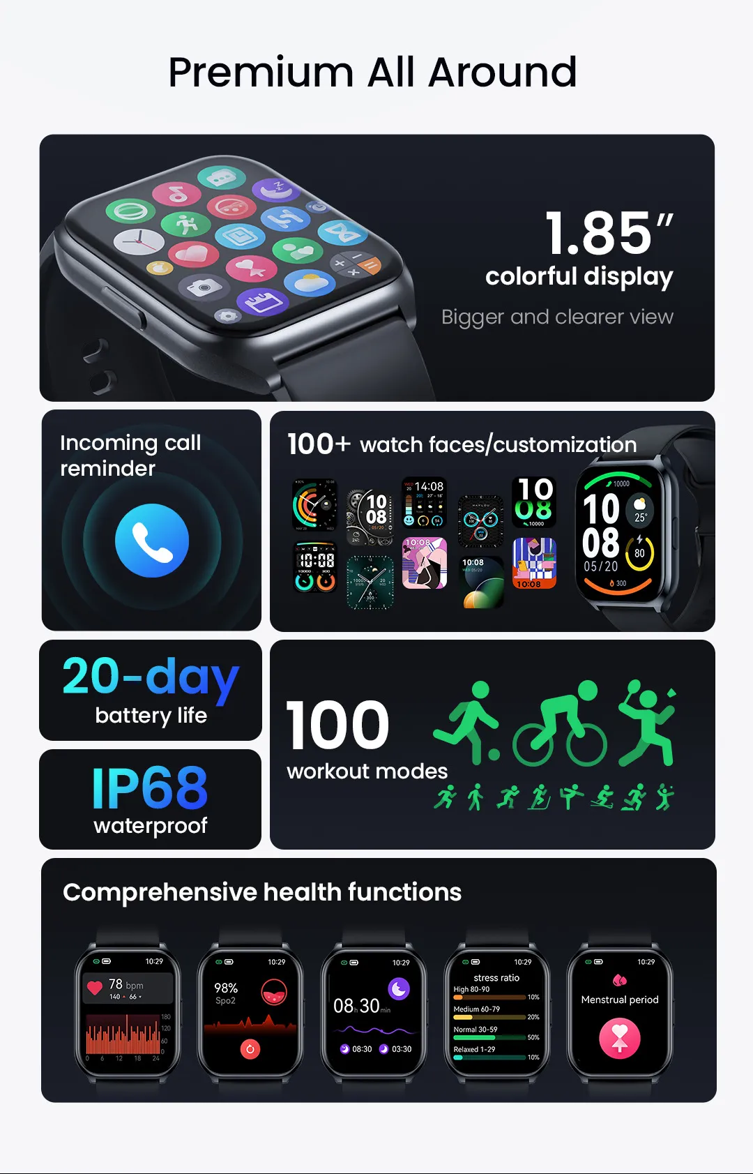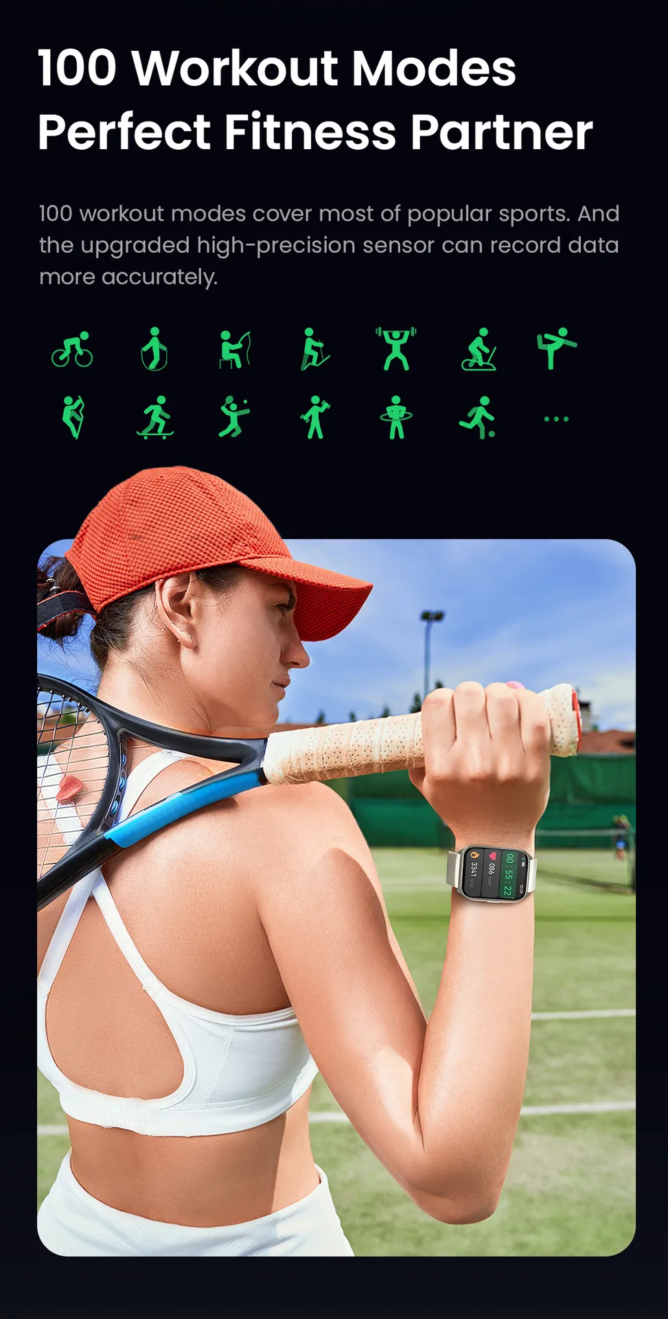 This smartwatch isn’t just a gadget – it’s a lifestyle enhancer. With advanced health tracking, sports modes, and smart features, it’s designed to support your goals and elevate your day-to-day life.