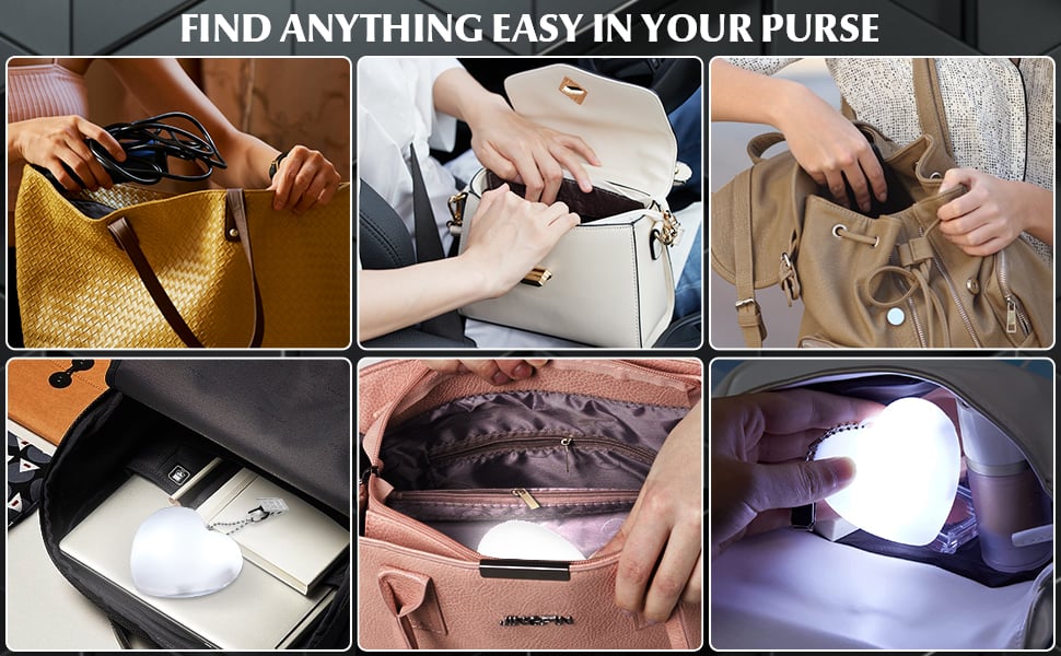 - Quickly Light Up Your Purse - Do you always have trouble finding the items in your bag? The handbag light can light up your backpacks and help you easily find lipsticks and keys