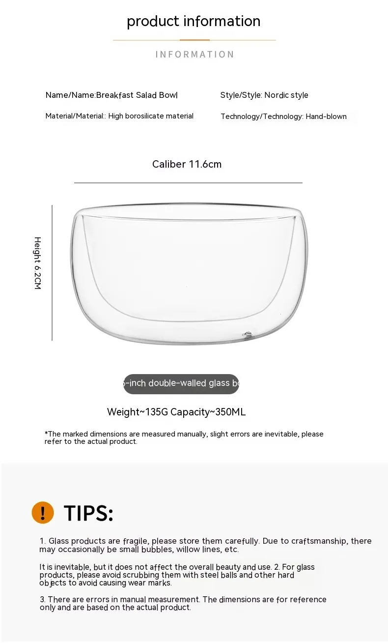 Heat Resistant Household Japanese Double-layer Glass Bowl