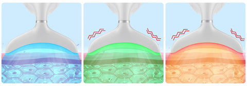 This LED massager combines three types of photon therapy—blue, red, and green lights. The blue light helps with acne treatment and minimizes pores, the red light stimulates collagen production to reduce wrinkles, and the green light balances and calms the skin. This beauty therapy provides a complete approach to skin care, helping you achieve a glowing and youthful complexion. With consistent use, the HexoSkin™ massager boosts collagen, improves blood circulation, and enhances the skin's natural radiance, making it a must-have tool for those serious about their skincare routine.