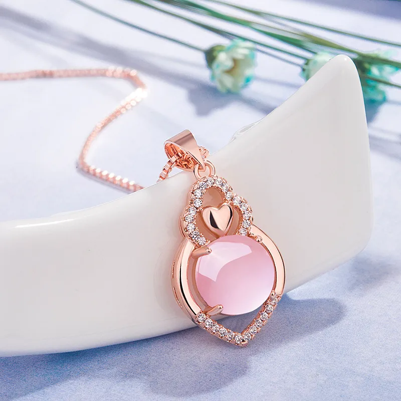 Hibiscus Stone Small Love Pendant Rose Gold Pendant With Micro Inlaid Zircon