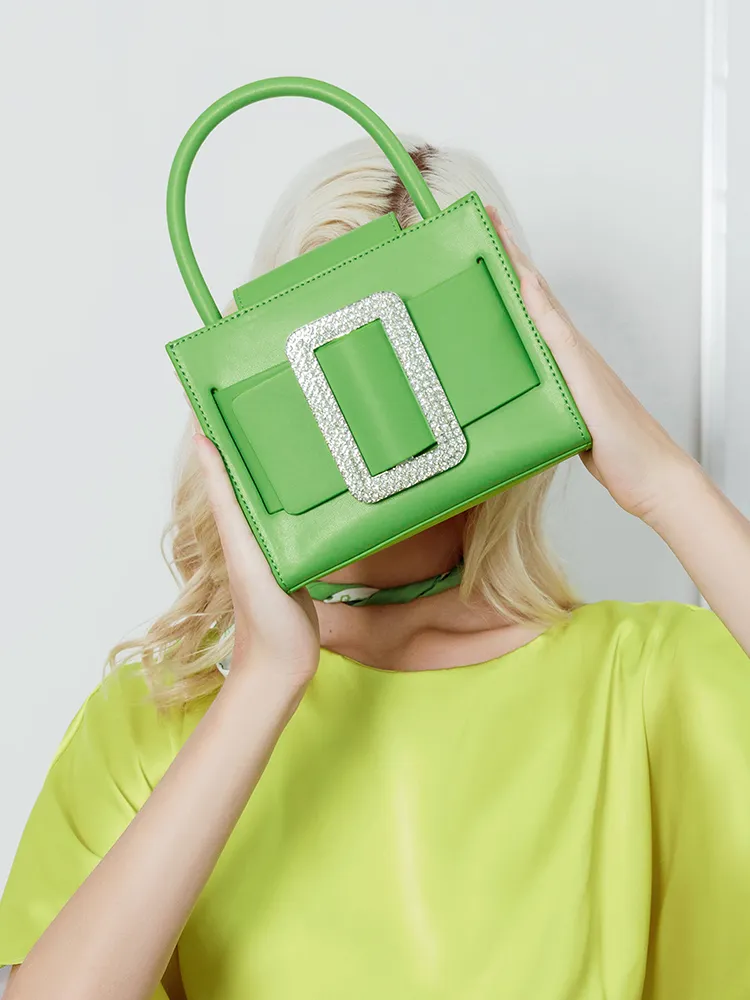 High End Fashion Messenger Bag Green Diamond Small Square