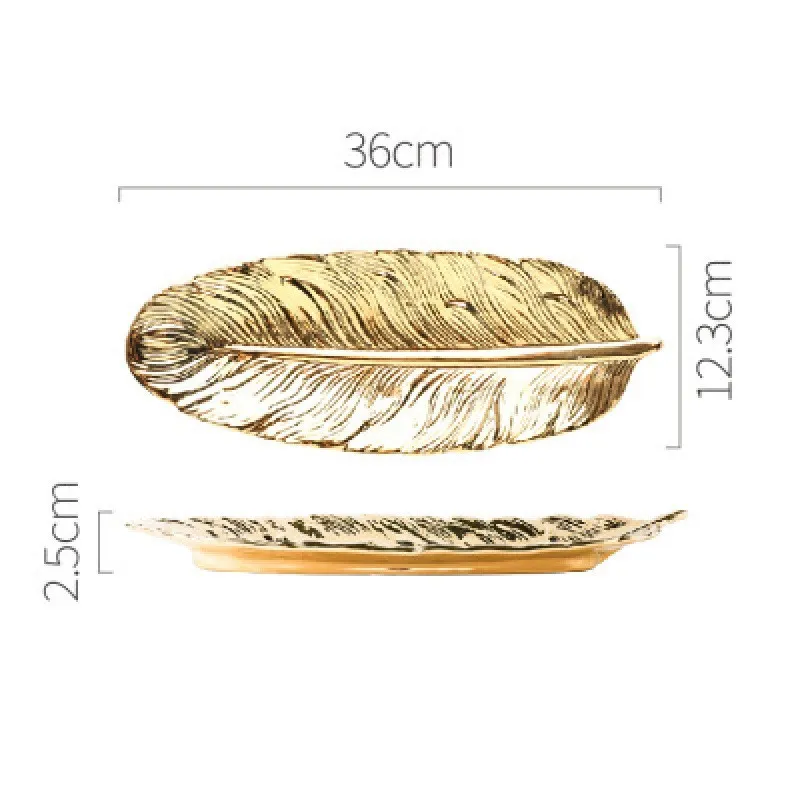 Specifications: gold-painted matte white feather small, gold-painted matte white feather large, green small feather tray, green large