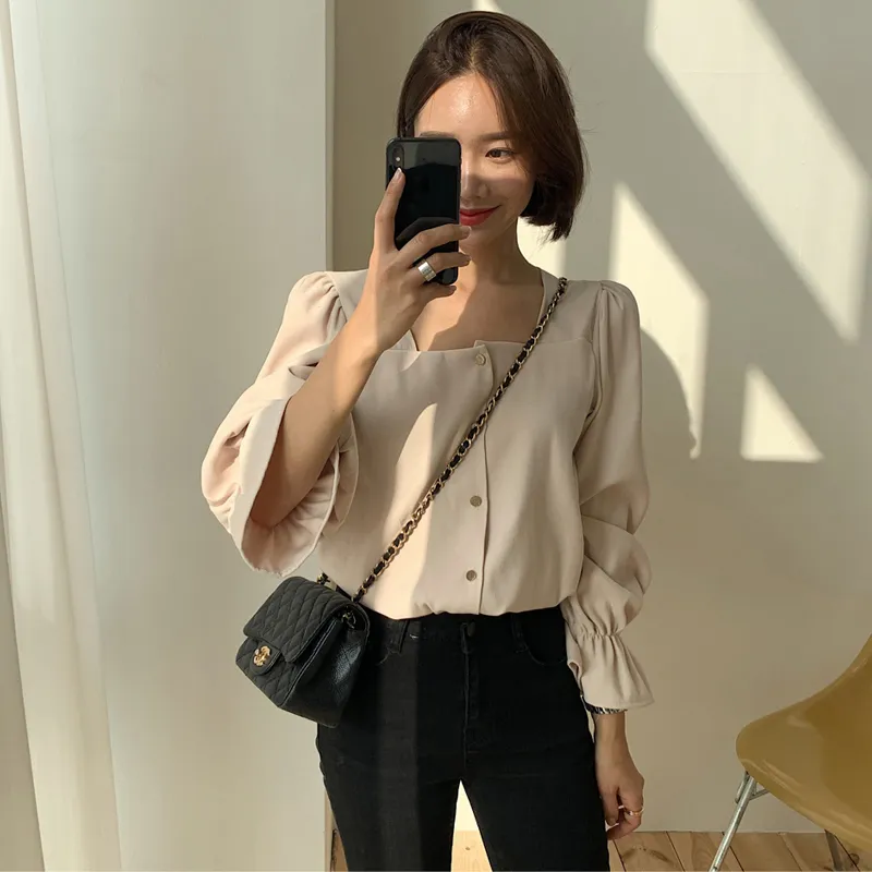High-End Shirts With Square Collar Tops