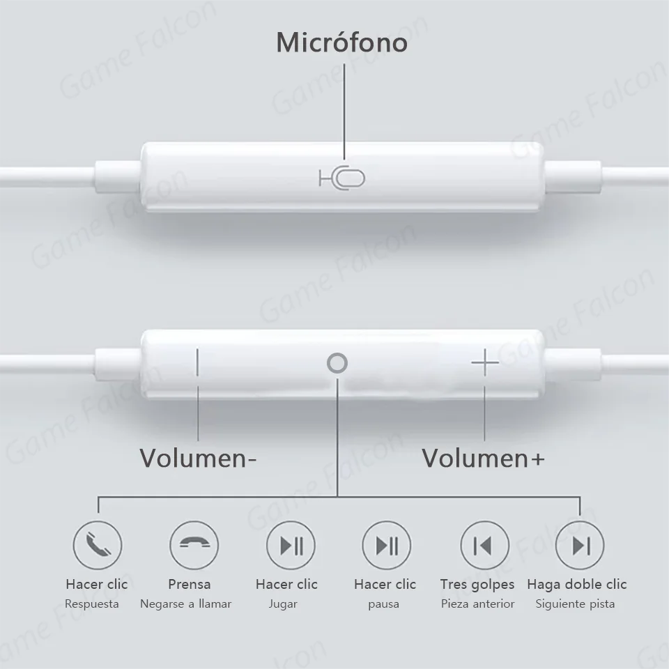 đ”ăRemote Control & MicrophoneăThe microphone headset has built-in microphone and button control, freeing you from your device to make calls, answer, reject and end calls. The headset is equipped with a volume adjustment button, which can play the previous/next song, pause/play on the headset.