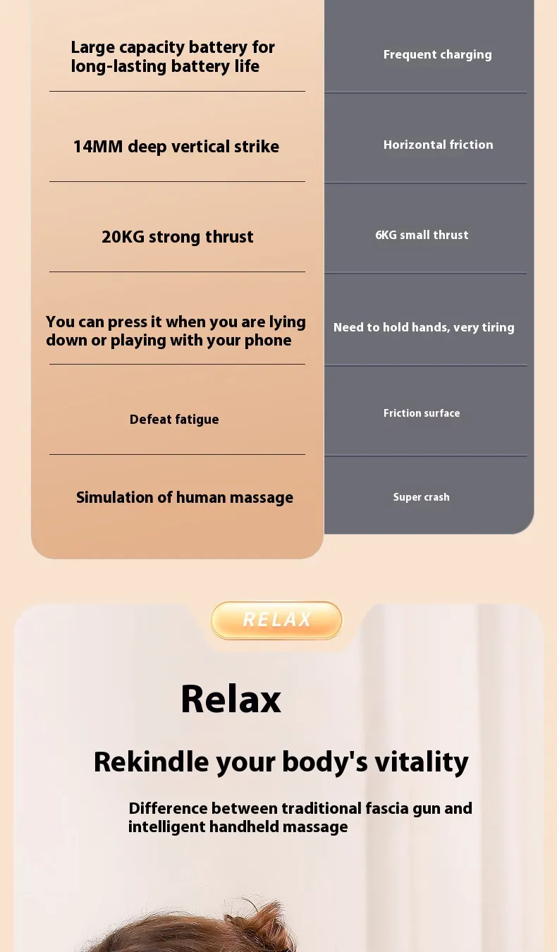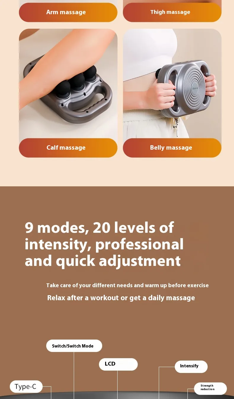 The massager uses advanced high-frequency vibration to penetrate deep into muscle tissues, alleviating pain and reducing soreness.