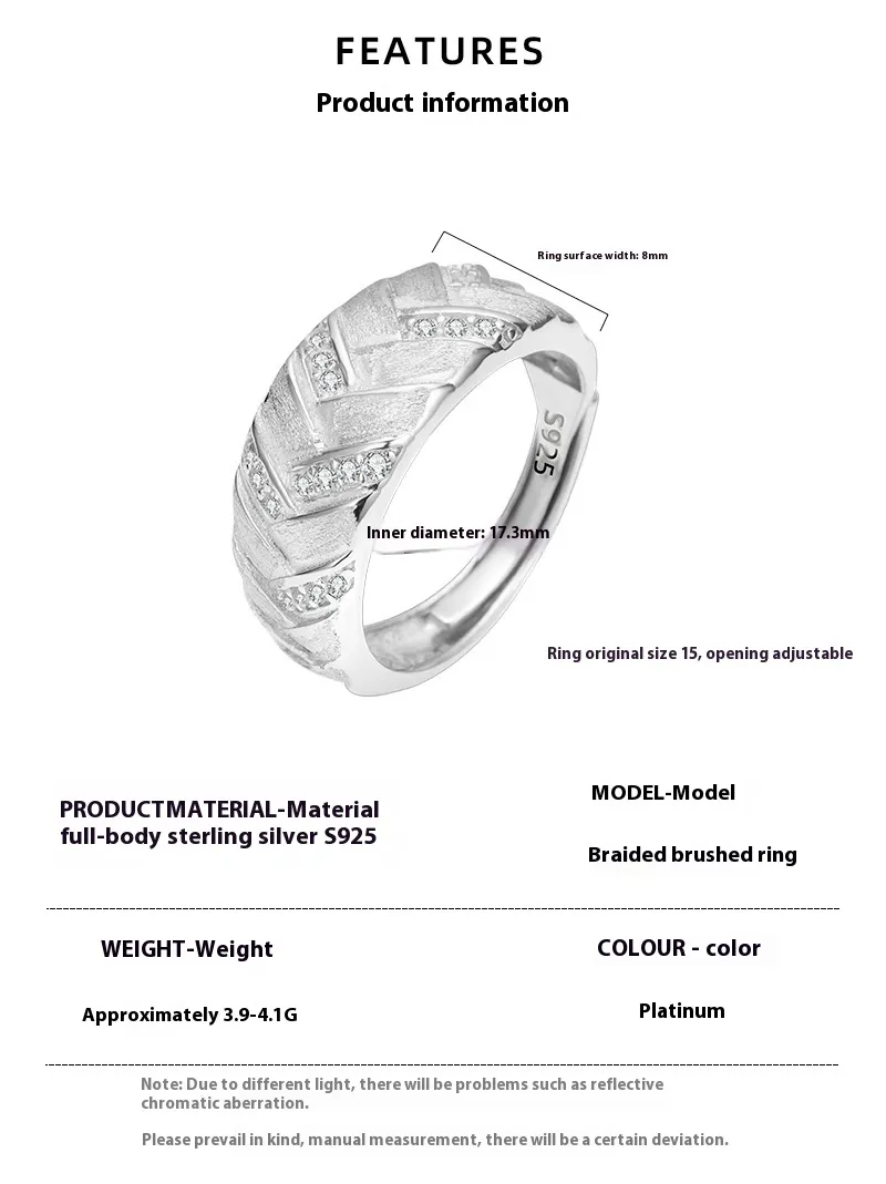 High-grade Light Luxury Woven Brushed Ring Women's 925 Sterling Silver Adjustable