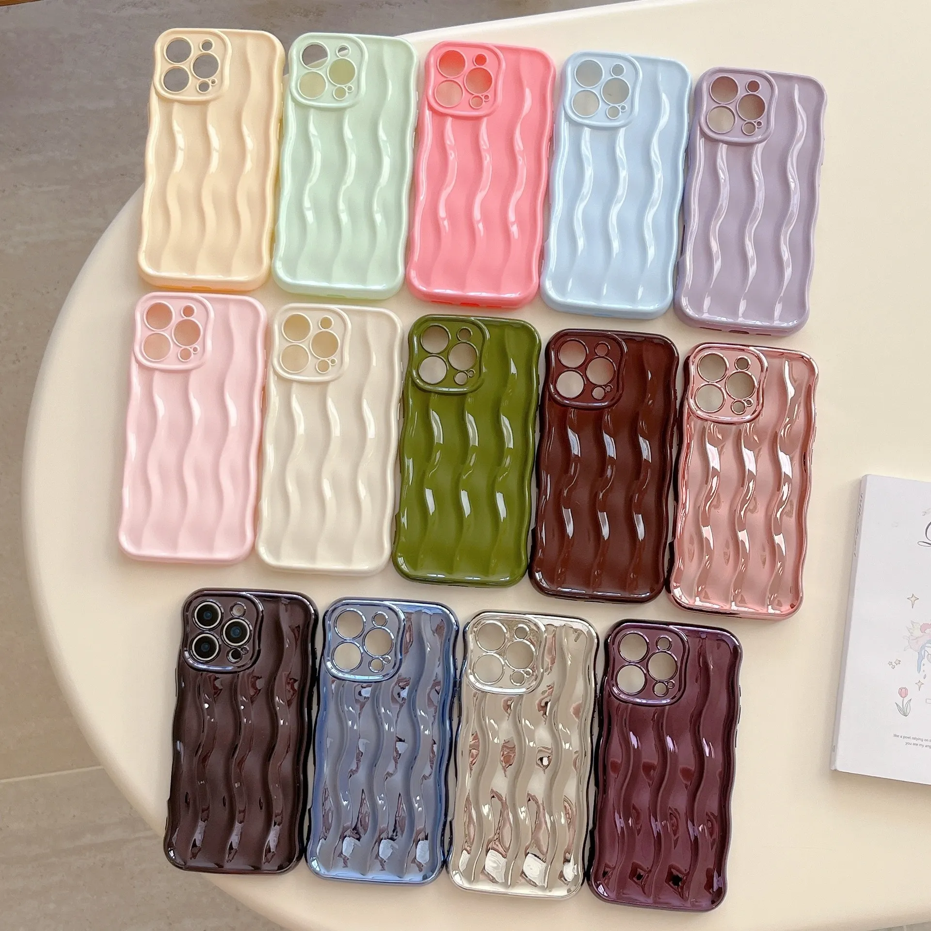 High-Grade Wave Stripes Phone Case – Solid Color & Simple Design
