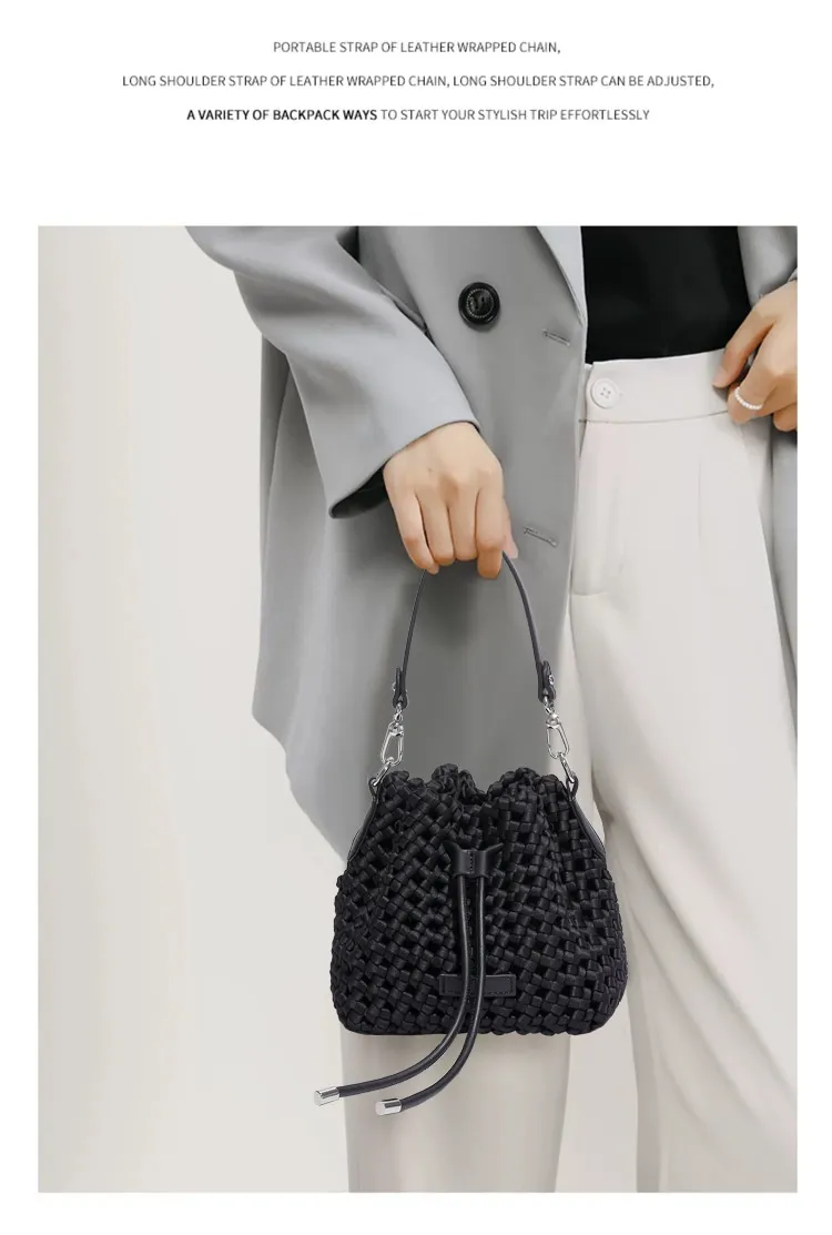The High-Grade Windmill Knot Bucket Bag Hand-Woven is a striking accessory that celebrates the beauty of hand-crafted design. Perfect for fashion enthusiasts who appreciate unique and high-quality accessories, this bucket bag combines functionality with artistic elegance. Its intricate windmill knot pattern and durable build make it a must-have for both casual and formal occasions.