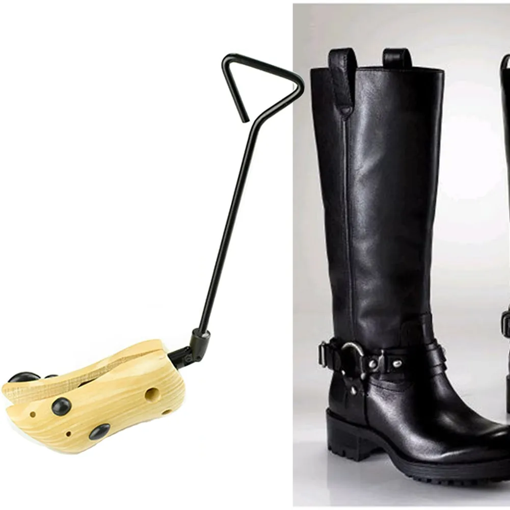The High Heels Keeper Adjustable Length Boots Expander is a versatile tool crafted from durable wood, designed to stretch and expand the length of your boots. Its adjustable mechanism allows for a tailored fit, accommodating various boot sizes and styles. This expander is particularly beneficial for individuals with wider calves or those seeking extra room in their boots.