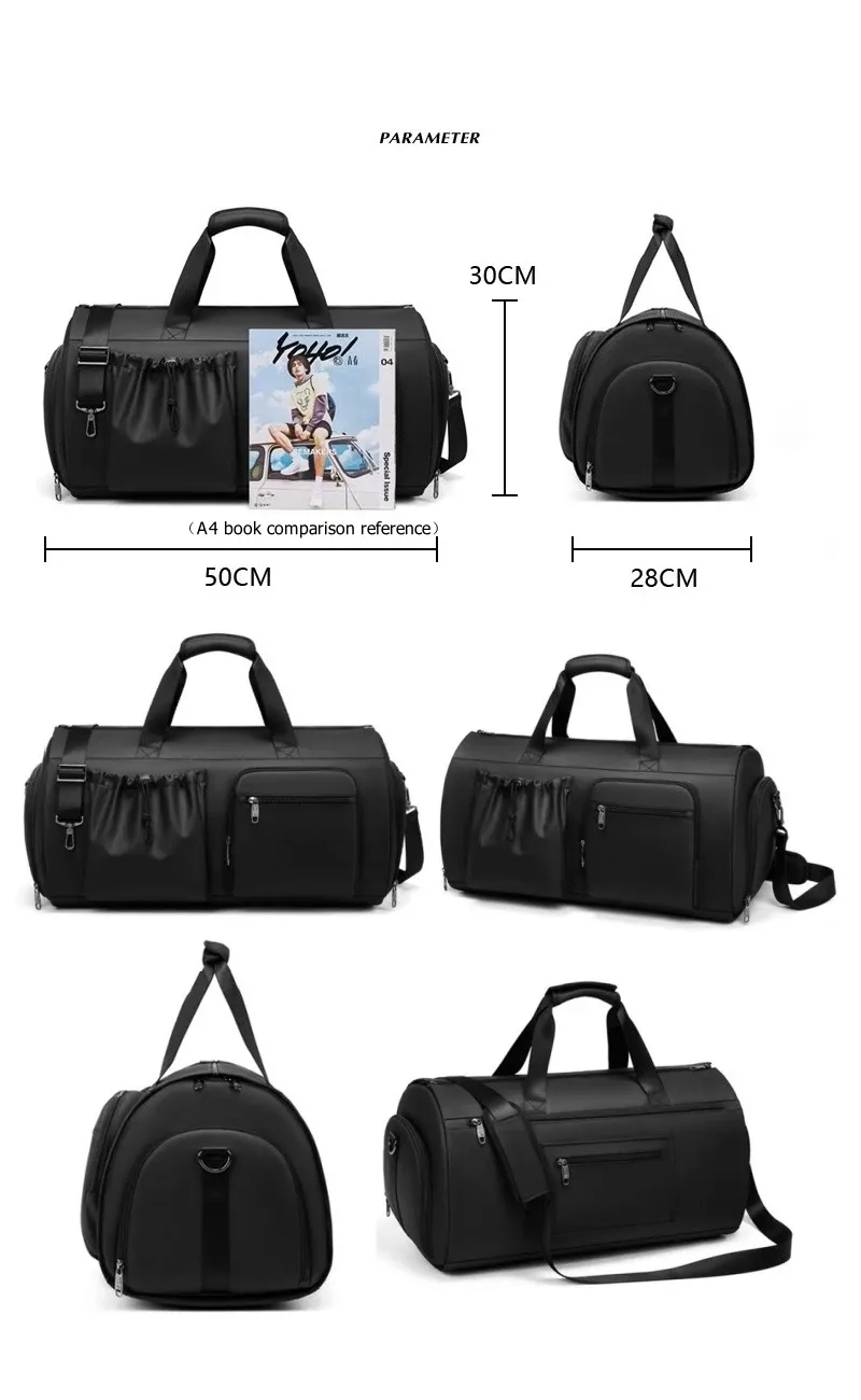Upgrade your travel experience with the High-Quality Waterproof Suit Bag for Men. Order now and enjoy a large-capacity, stylish, and functional travel bag with dedicated compartments for shoes and wet items!