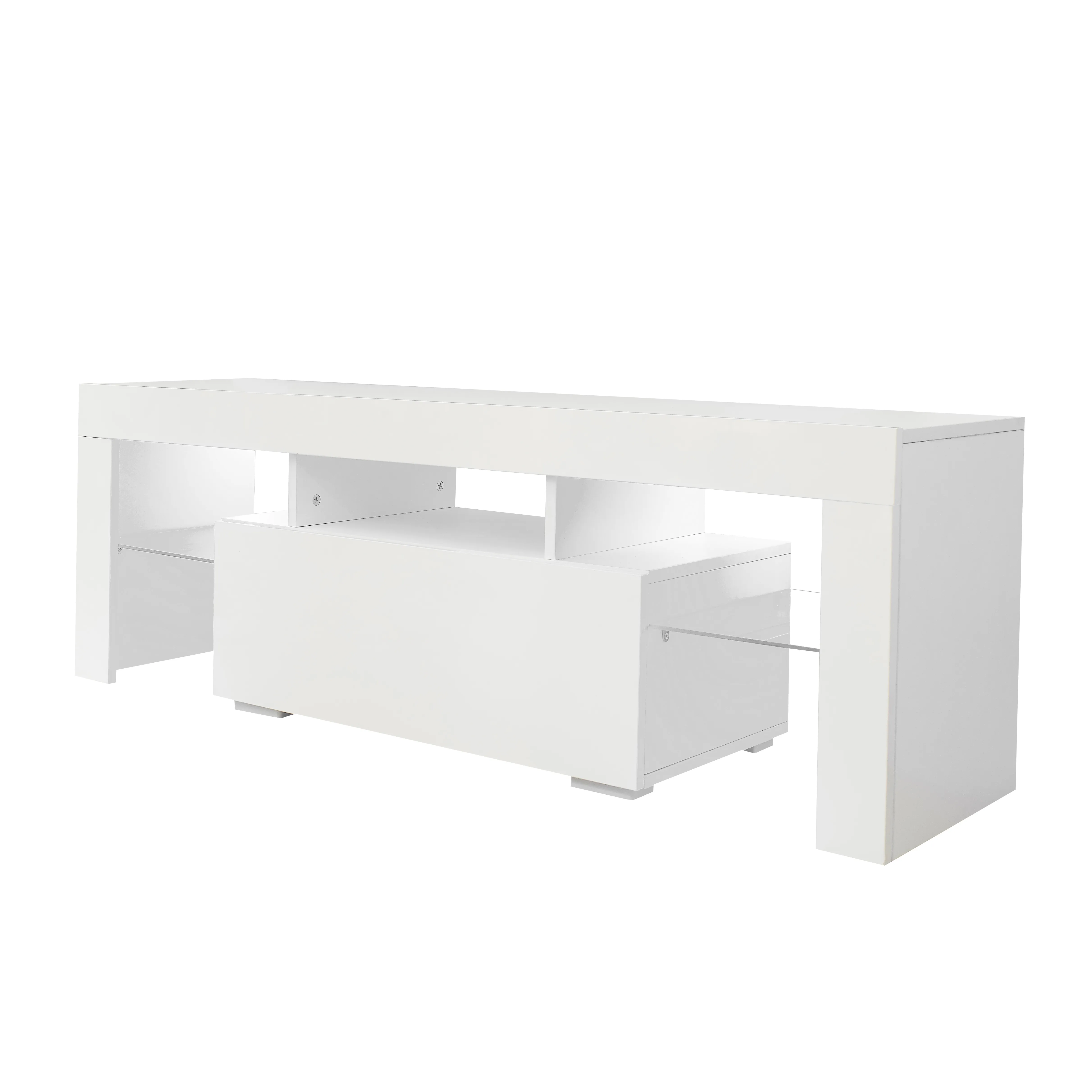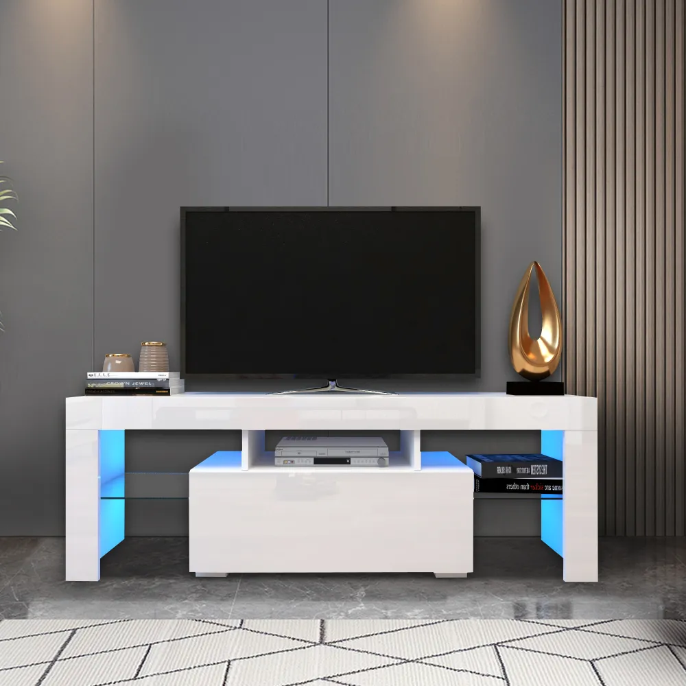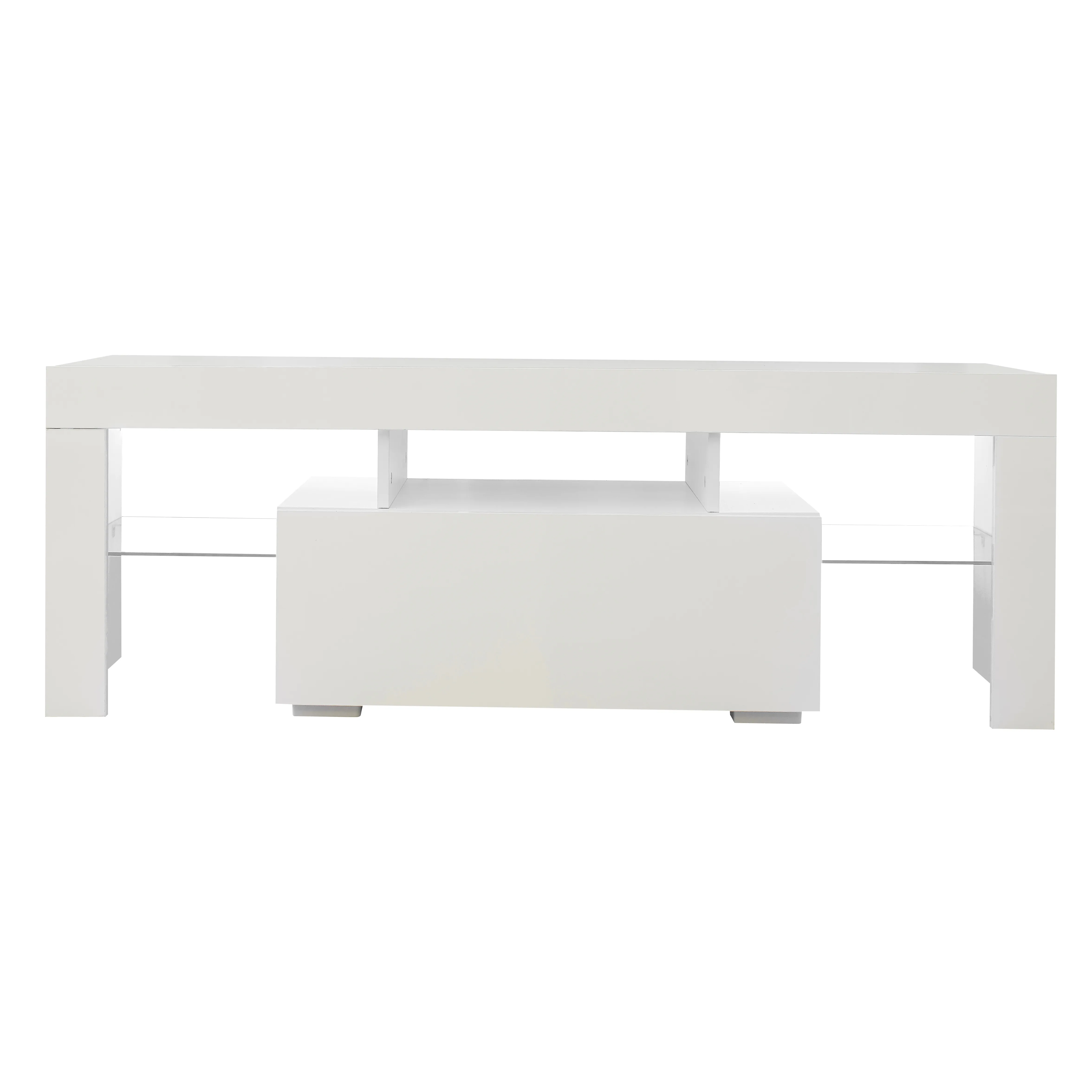 Feature: Quantity: 1pc. Material:Chipboard Colour:White. Size:130×35×45cm/51.2×13.8×17.7in. Net Weight : 55.1lbs load bearing:30KG Applicable scene:living room,etc. Due to the complicated installation, it is recommended that you install according to the installation instructions. Each board and mounting parts have labels, please find the corresponding label to install Modern Central entertainment features LED lights system for up to 55-inch TV Screens,16 kinds of monochrome and 4 kinds of discoloration, elegant enough for adding special charm to your house. Package Includes: 1pc×TV Cabinet 1pc×Instruction manual