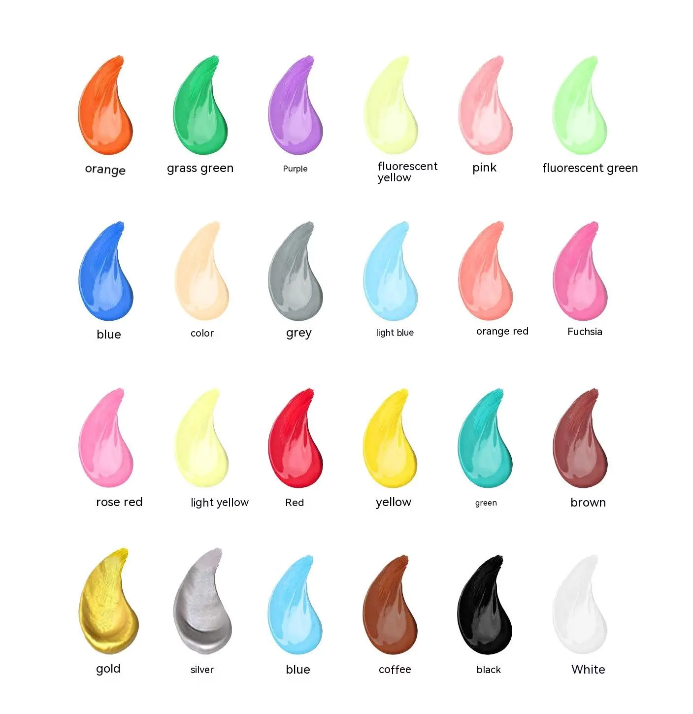 Color: white, grass green, orange red, orange, pink, skin color, brown, black, red, yellow, gray, gold, coffee, blue, green, Rose Red, light