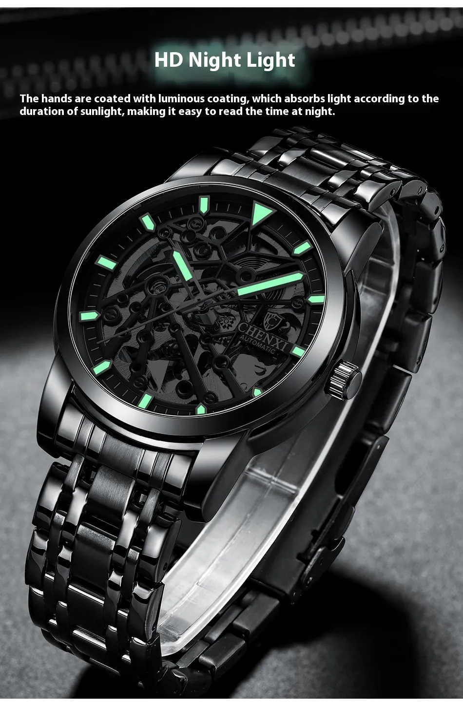 reliable performance without the need for batteries, winding itself with the natural motion of your wrist.The Waterproof Luminous Watch is