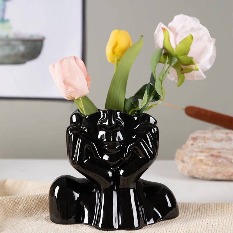 Made from premium ceramic material, this flower vase sculpture is designed to be both a statement piece and a functional vase. Perfect for showcasing fresh flowers, dried arrangements, or as a standalone decorative object, this vase brings beauty and refinement to any space.