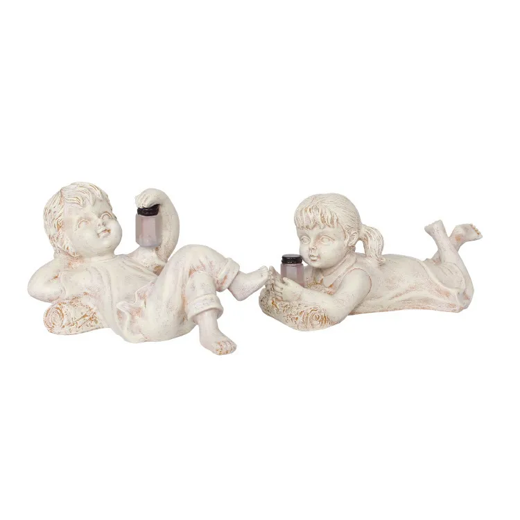 Home Decor Resin Craft With Firefly Jar Garden Statue Children Desktop Accessories Boy Girl Cute Gift Outdoor Solar Lighted Art