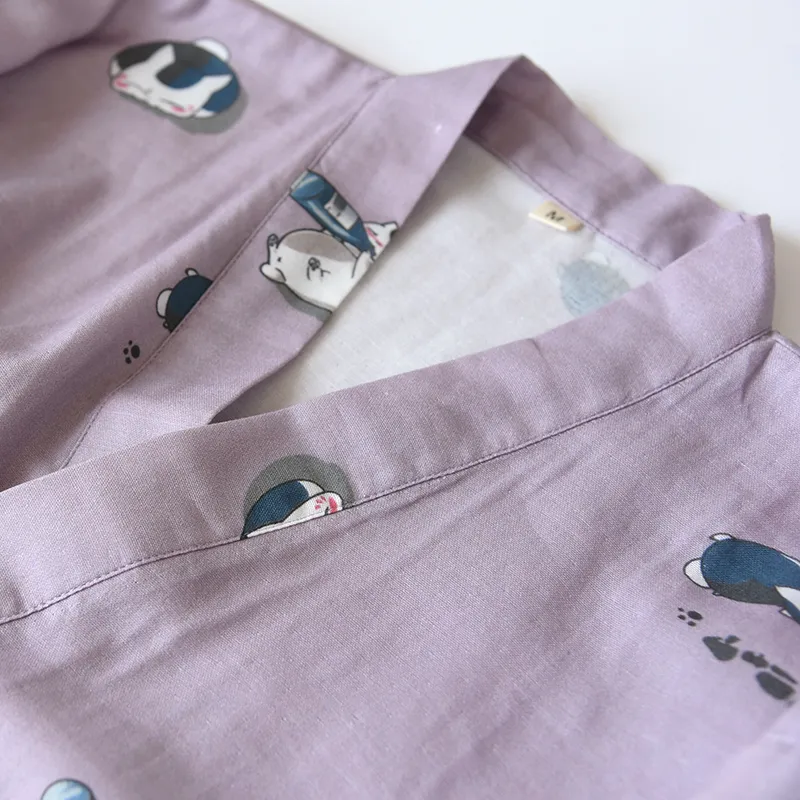 Color classification: Purple-Gauze Kimono Drunk Cat-Female Dark Green-Gauze Kimono Drunk Cat-Men's Pants