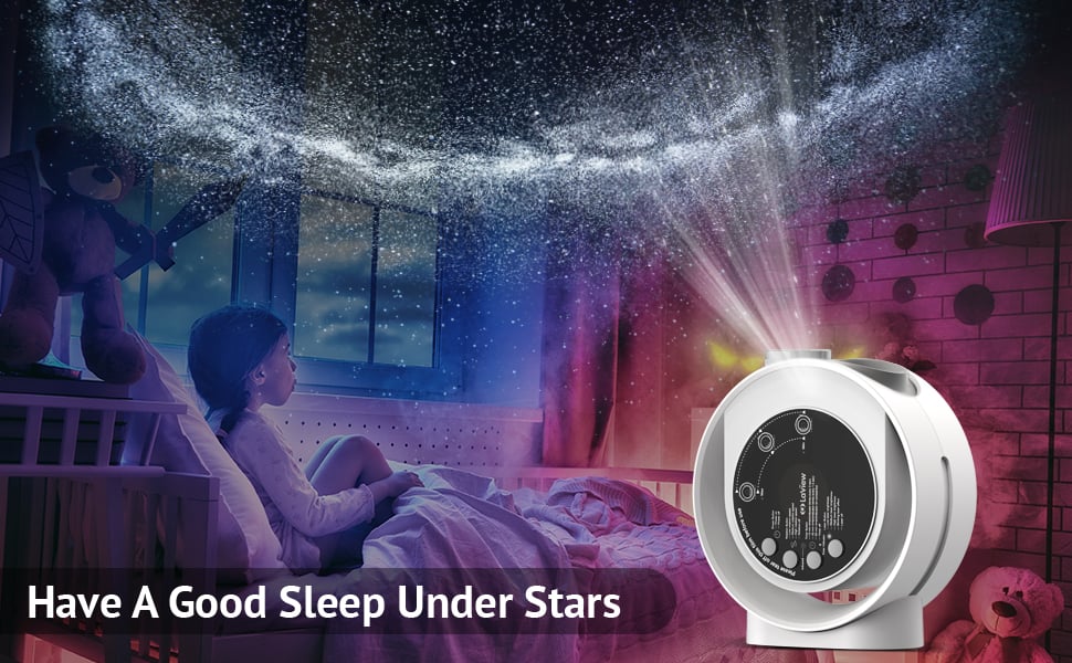 - Immersive Room Decor Experiences: LaView Night Light projector brings instant mood ambiance to the party, gaming room, meditation space,bedroom,kid’s room, or any room of your home. You can also use the projector on your kid’s bedtime stories. Enjoy dining under the stars, create a relaxing spa environment, or accent your home theater in seconds. Our company will release more film discs. (new release disc not include in the projector)