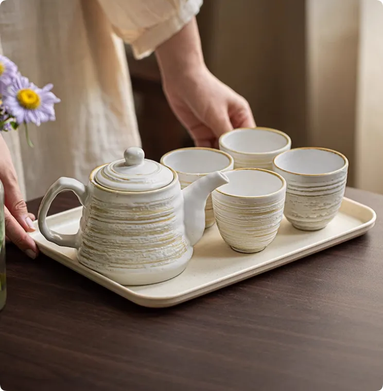 The Home Teapot Water Utensils set is designed for easy cleaning. Ceramic is naturally non-porous, meaning it won’t absorb tea stains, and the smooth surface ensures simple hand washing. For added convenience, the set is also dishwasher safe, making it hassle-free for daily use.
