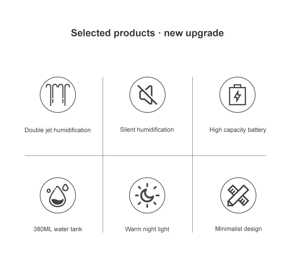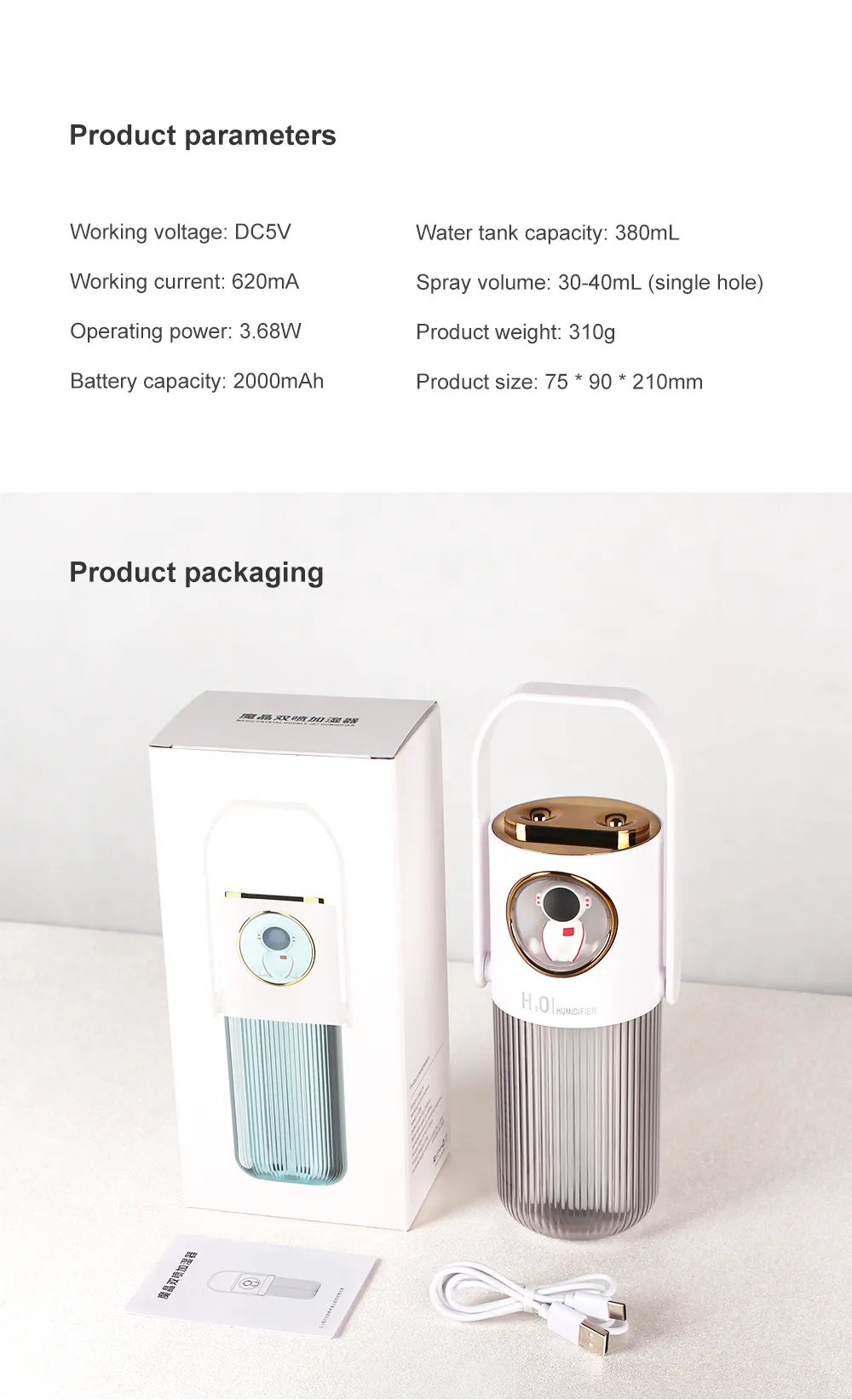 HOMEFISH 2023 New Arrival 300ml Humidifier 2000mah Battery Operation Air Humidifier For Bedroom