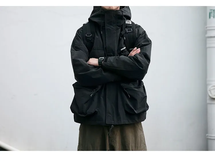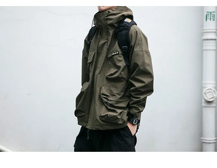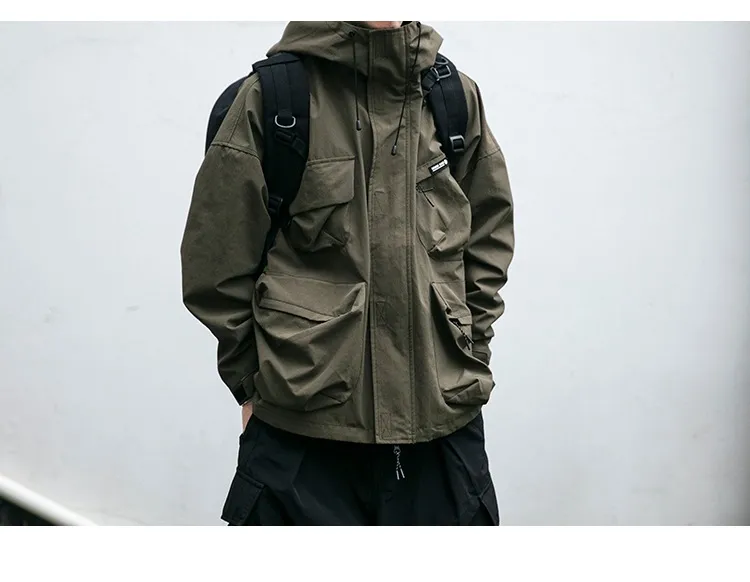 Hooded Jacket Men's Loose Three-dimensional Pocket Functional Windproof Jacket Casual Clothing