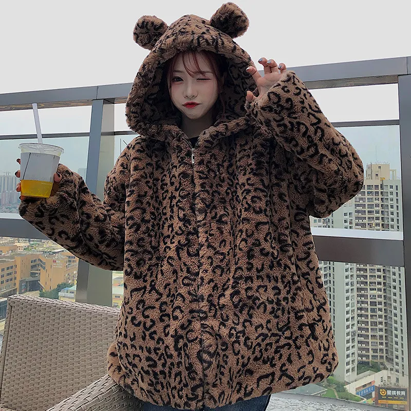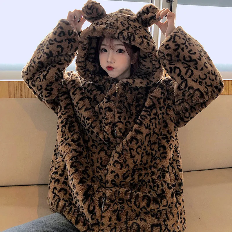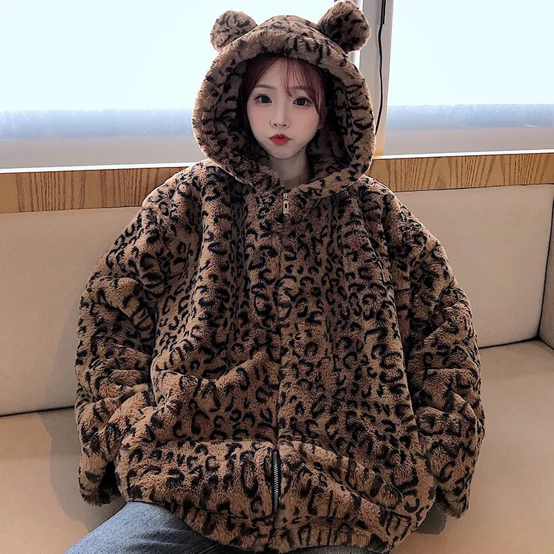 Hooded Korean Style Loose Coat Long Sleeves Plus Velvet Thickening