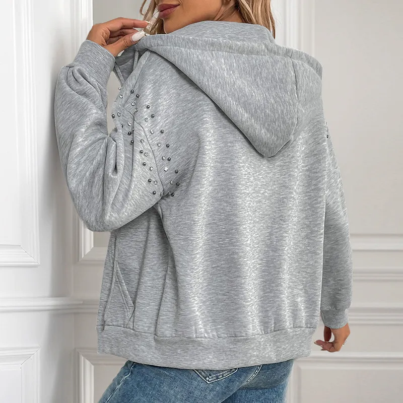 Hooded Long Sleeve Sweater Rivet Fashion Women