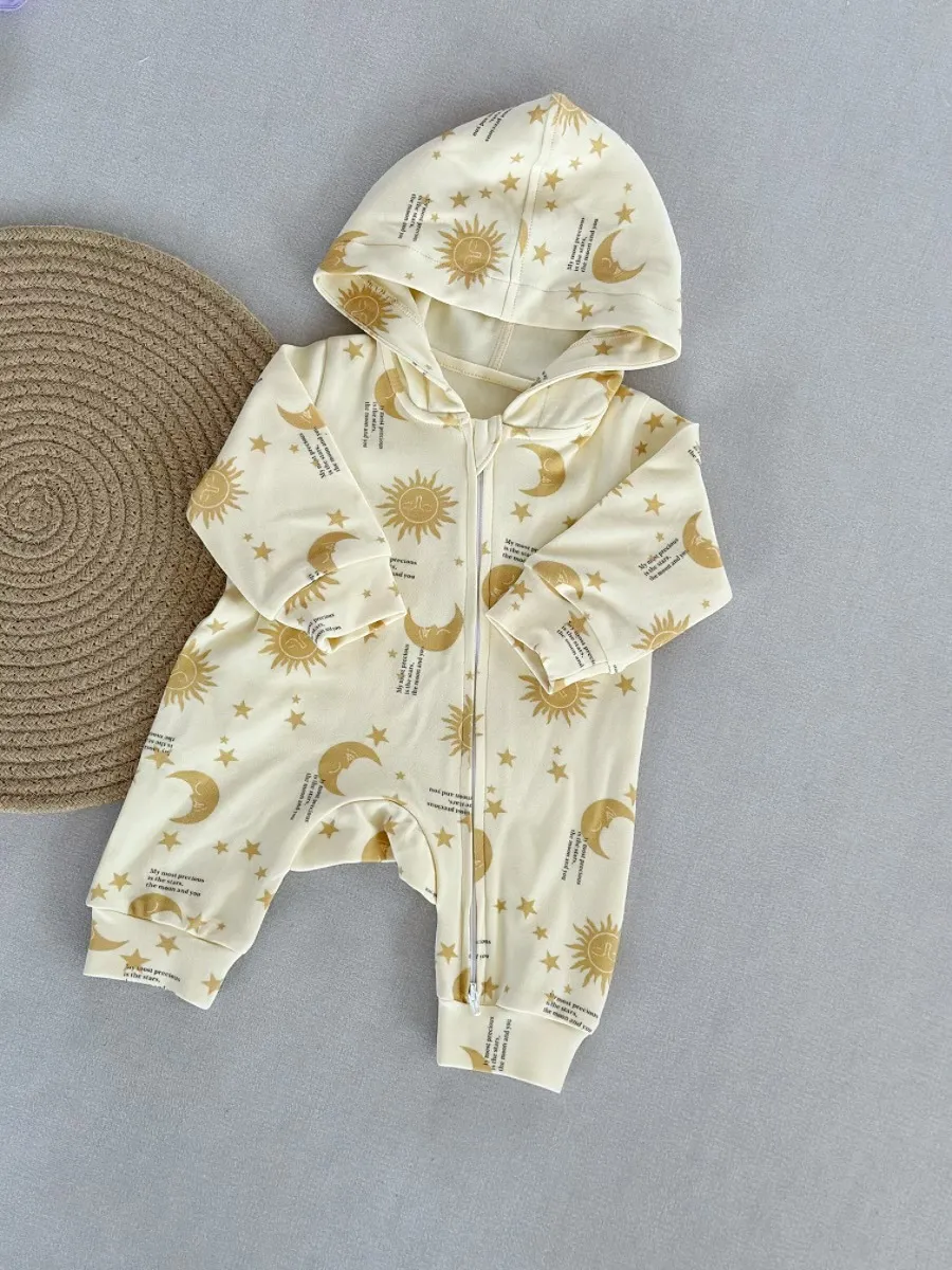 ๐ถ Hooded Pure Cotton Romper โ Childrenโs Long Sleeve Jumpsuit Outerwear
