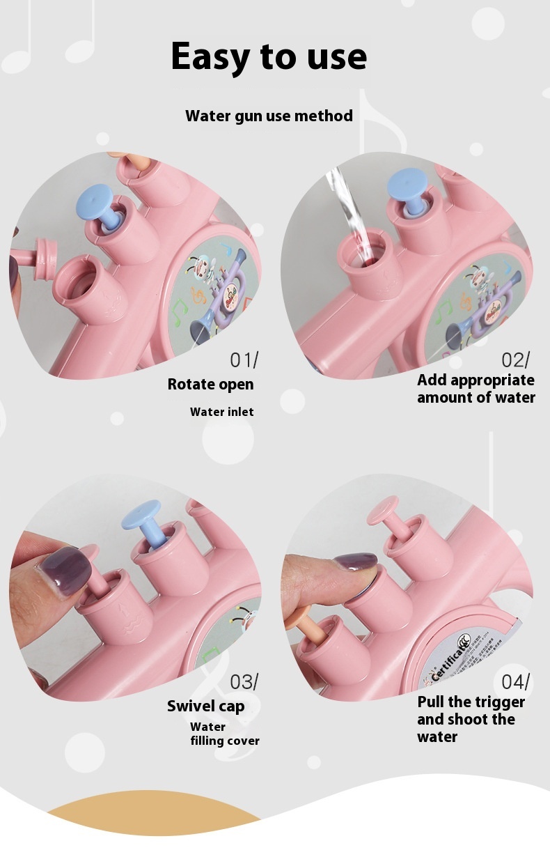 Function: Two-in-one water gun musical instrument