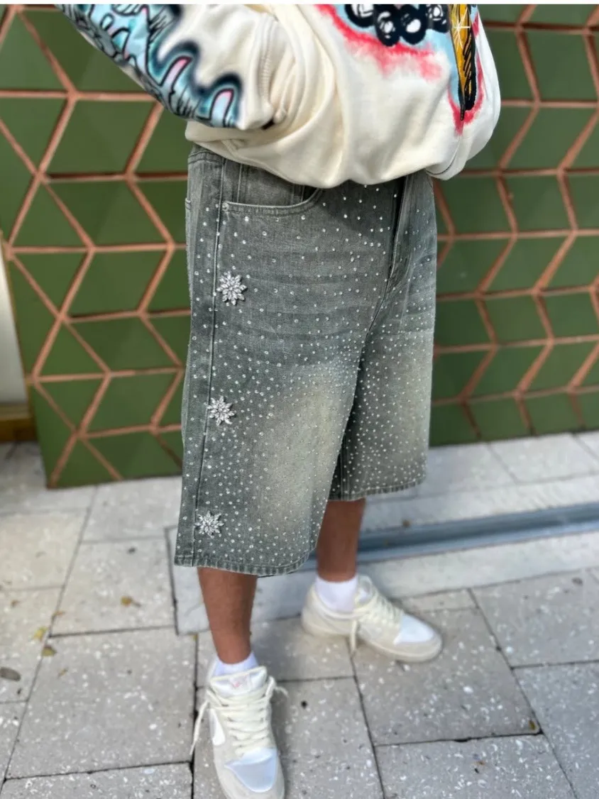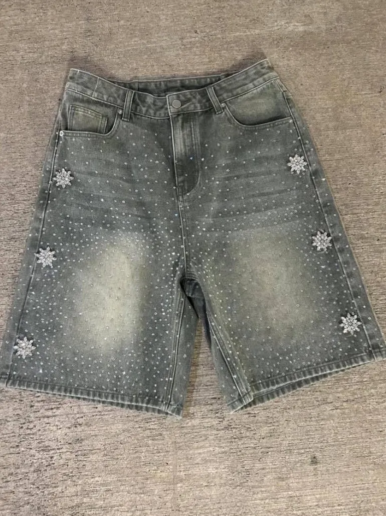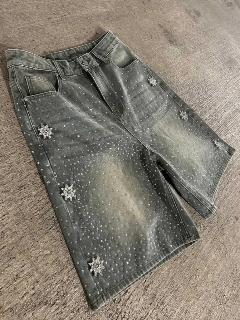 Hot Drilling Washed Denim Shorts – Stylish, Comfortable, and Trendy
