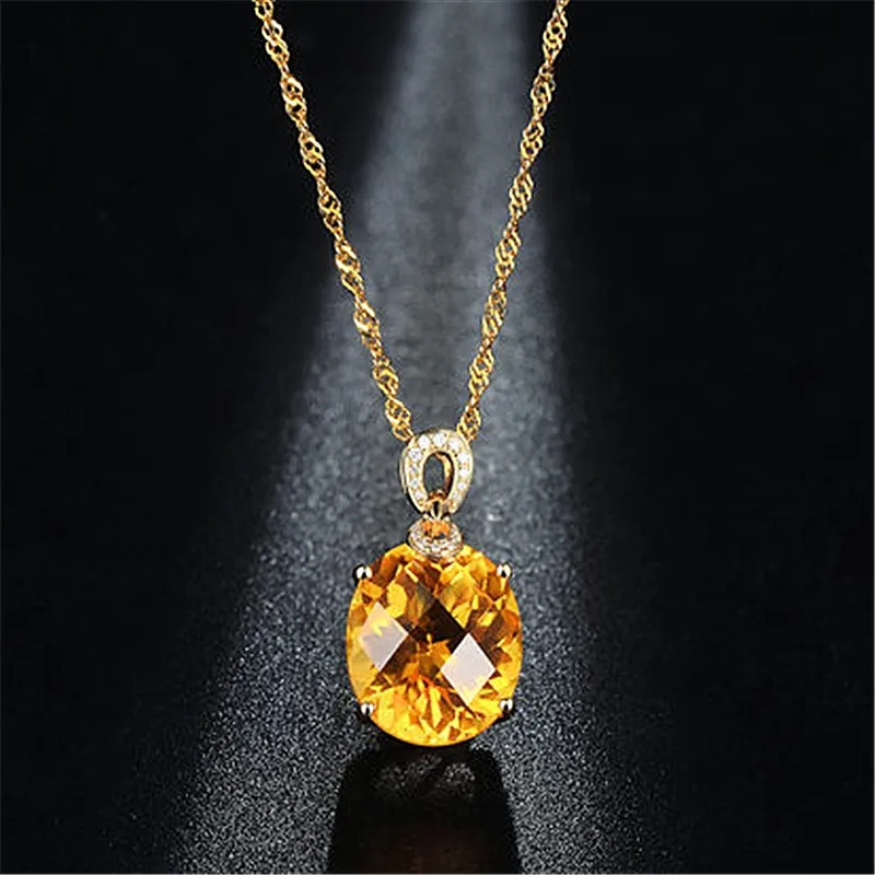 Color: Citrine Pendant [Without Chain], Gold Plated Water Wave Chain [45 cm], Citrine Pendant + Water Wave Chain [a set price]