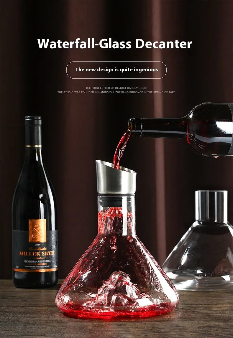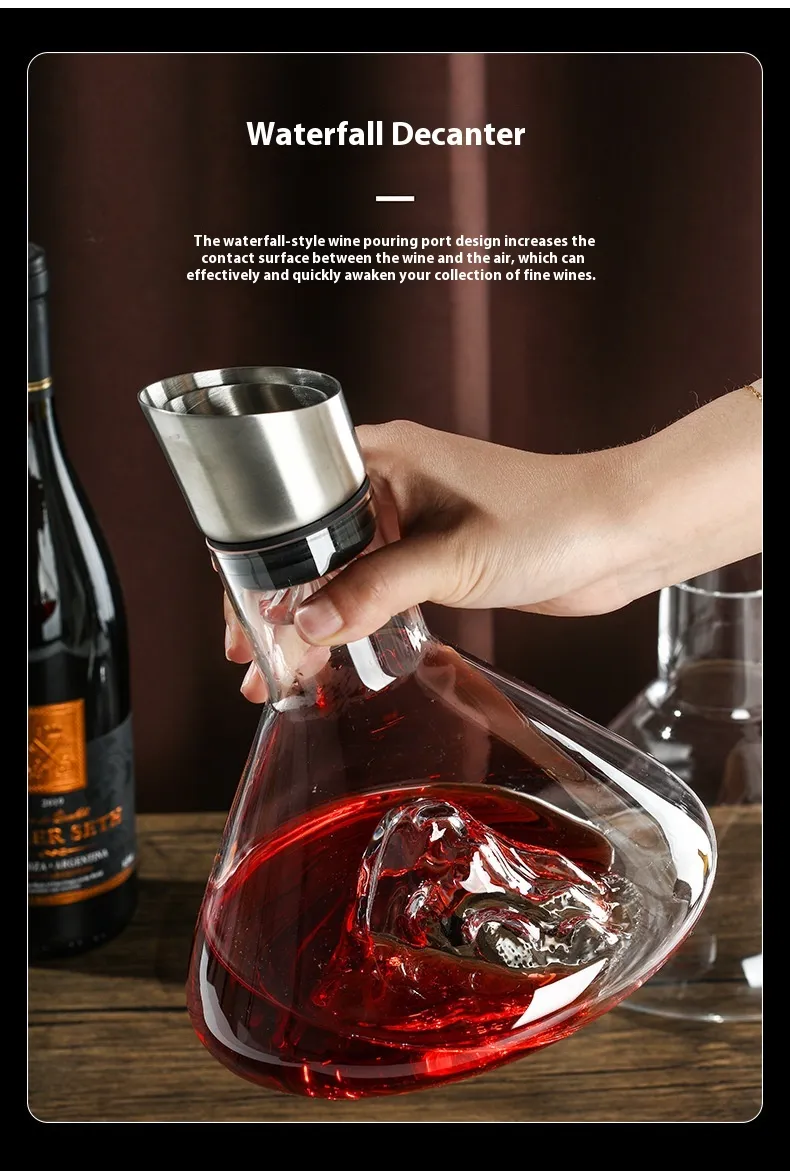 Hot-selling Iceberg Waterfall Wine Decanter Creative Transparent Lead-Free Crystal Glass Wine Dispenser Barware Quick Decanters