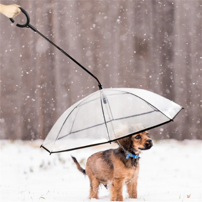 The primary benefit of the Transparent Pet C-Type Umbrella is that it keeps your pet dry and comfortable during rainy or wet weather. Unlike traditional umbrellas that can be cumbersome and difficult to manage while holding a leash, this umbrella provides coverage while leaving your hands free to guide and manage your pet.
