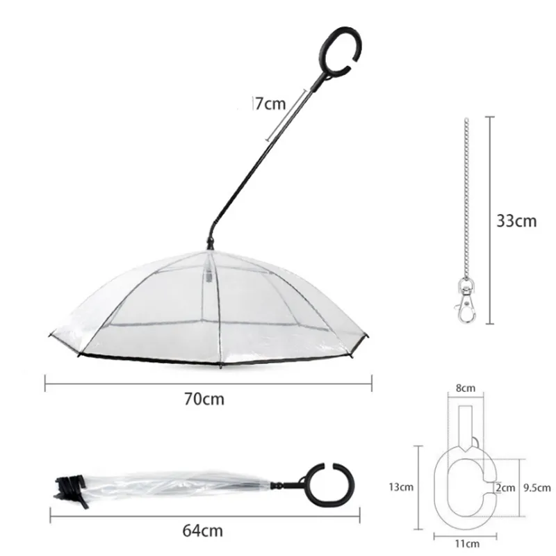 Whether you're walking your dog in the rain or protecting them from the harsh sunlight, this umbrella ensures that both you and your pet stay dry and safe. The transparent design allows for clear visibility, and the C-type handle gives you full control while keeping your hands free to manage your pet. Perfect for small to medium-sized pets, the Transparent Pet C-Type Umbrella is a game-changer for pet owners who want to provide the best care and protection for their beloved companions.