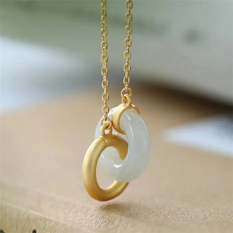 Hotan Jade Gold Plated Pendant Necklace