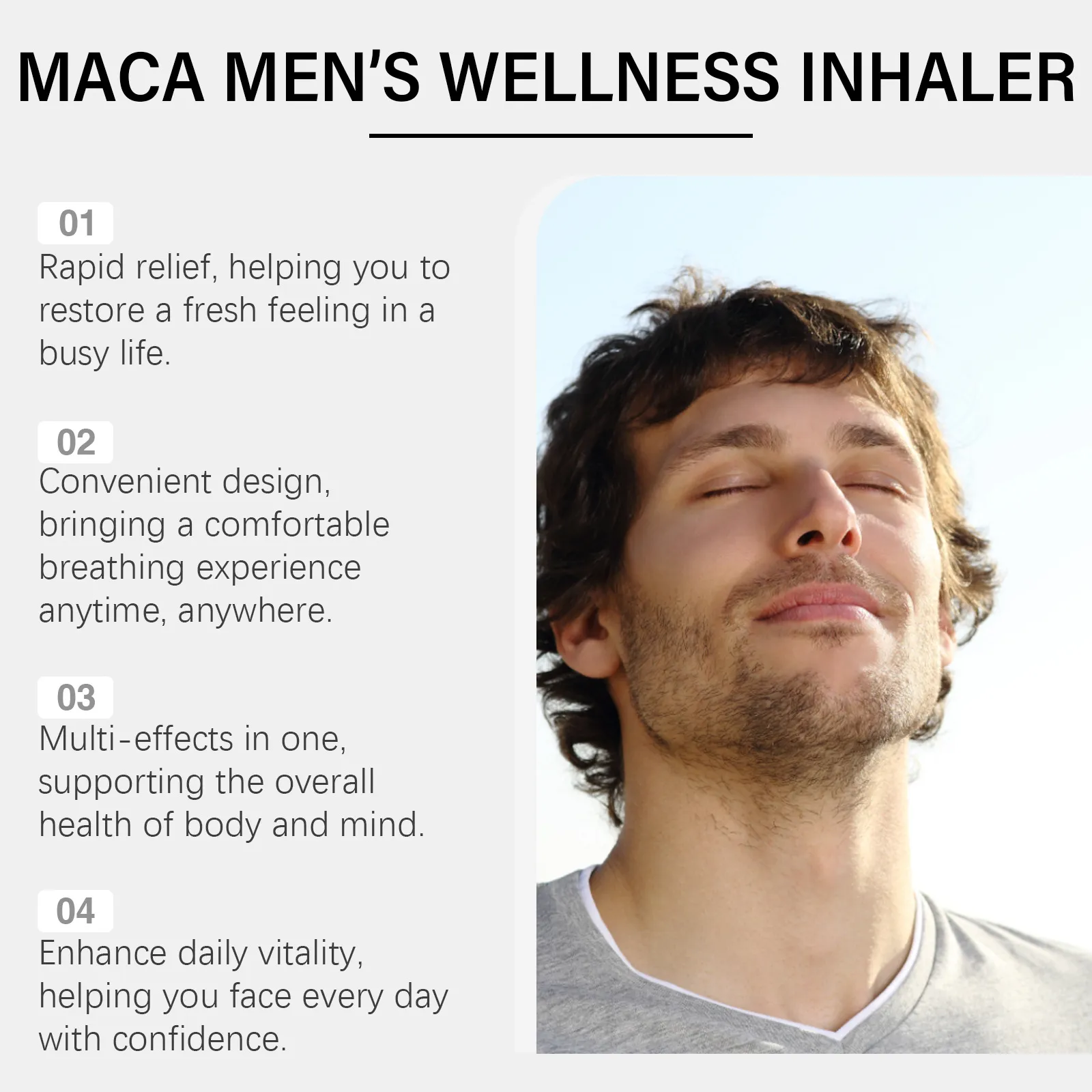 This aspirator’s herbal infusion — often containing soothing extracts such as mint, eucalyptus, and chamomile — promotes a refreshing sensation and a feeling of clarity with every use. Regular use helps improve breathing, reduce fatigue, and enhance overall wellbeing by increasing oxygen intake and supporting the body’s natural cleansing processes.