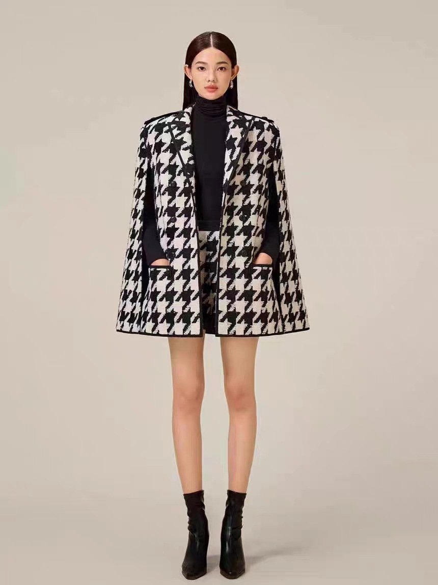 Houndstooth Woolen Cape Coat Shorts: A Chic and Stylish Blend of Classic and Contemporary