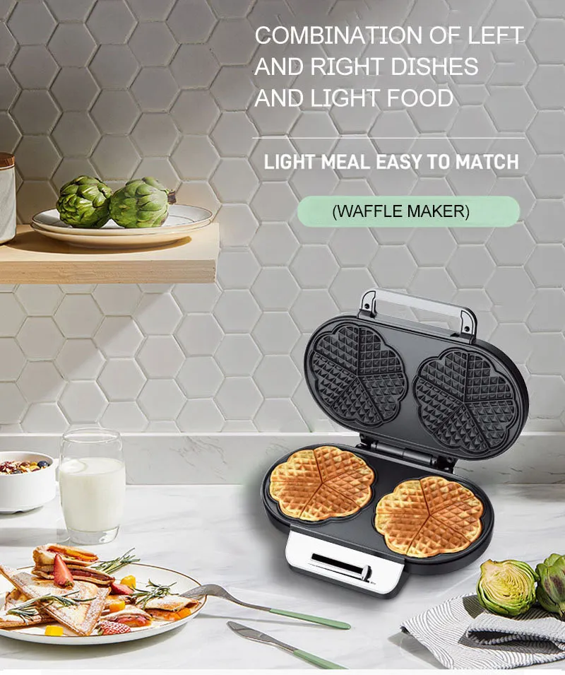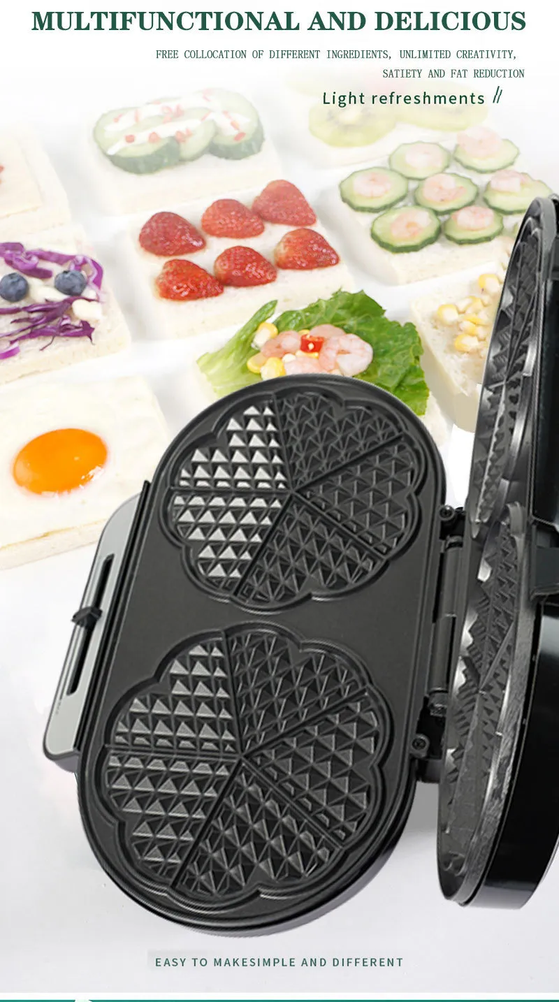 If you're looking for a fun and convenient waffle maker, this double-plate love heart waffle machine is the perfect kitchen companion!