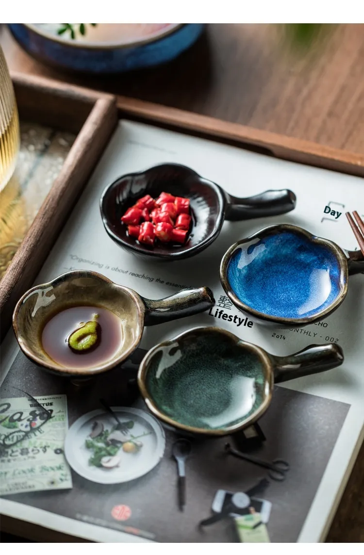 Household Ceramic Plum Hand Soy Sauce With Handle Saucer Dish