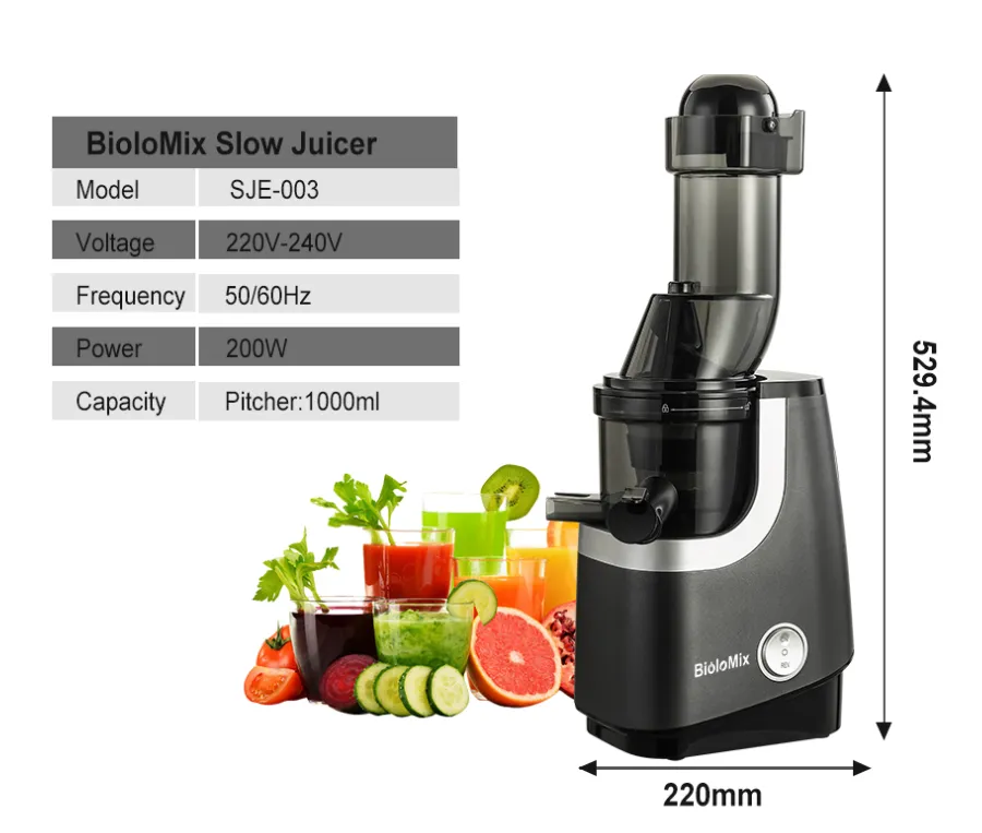 With its advanced extraction technology, this slow juicer ensures maximum juice output, leaving behind dry pulp and making the most out of your produce.