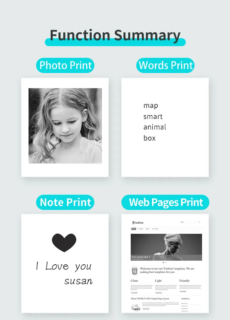 Multi-Purpose Printing: Perfect for printing labels, small photos, to-do lists, receipts, and even custom designs, making