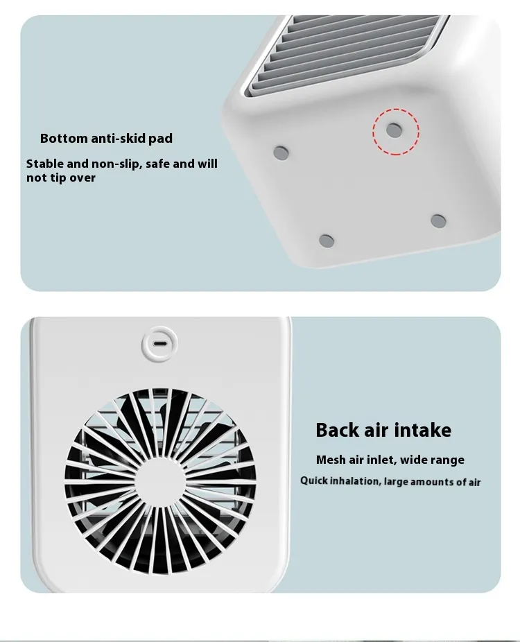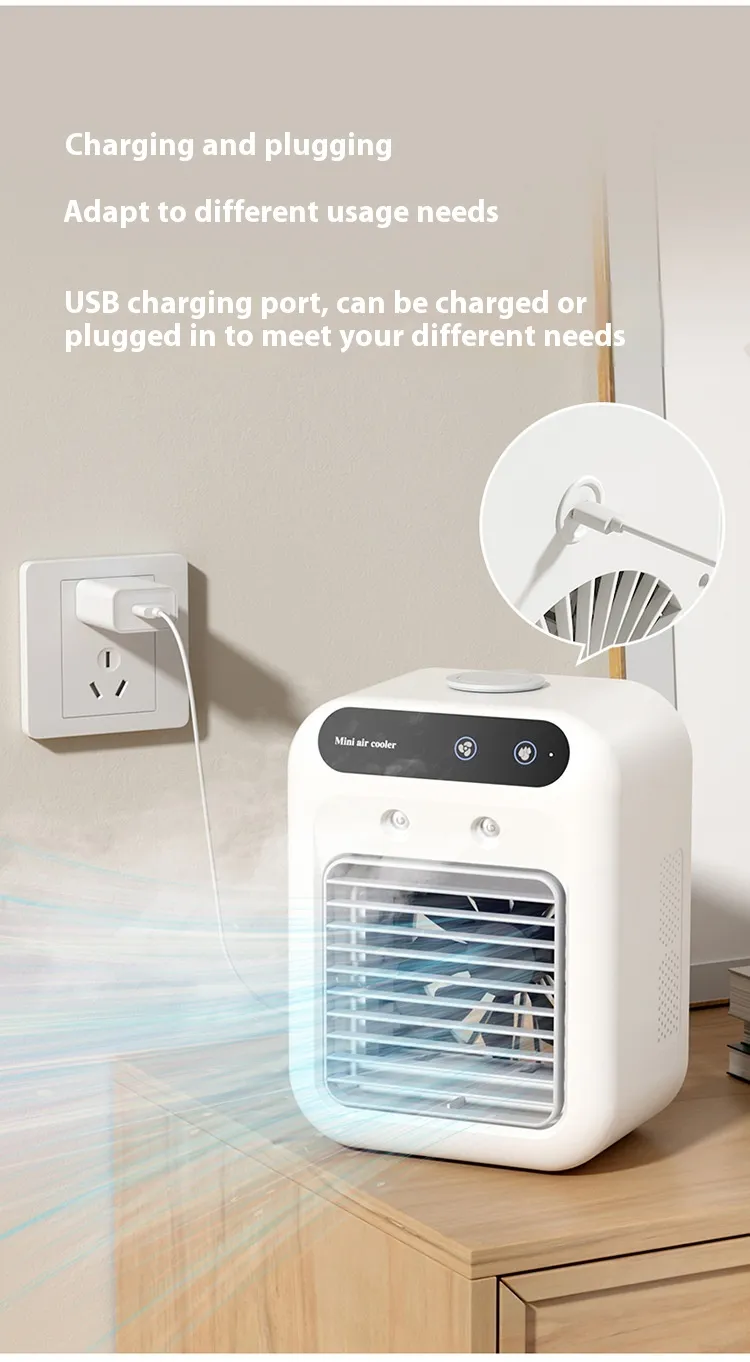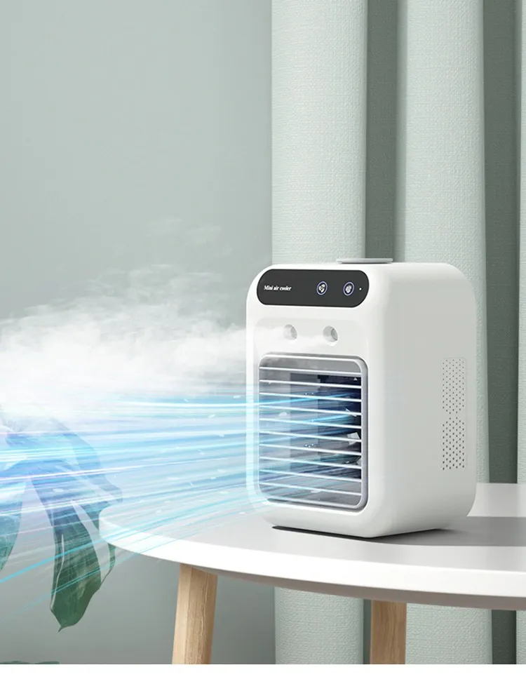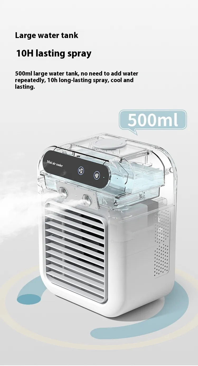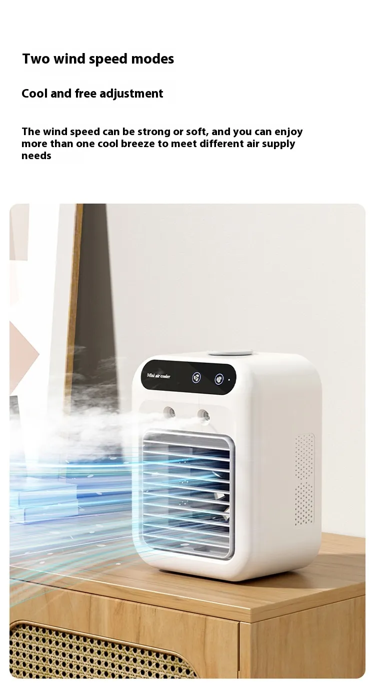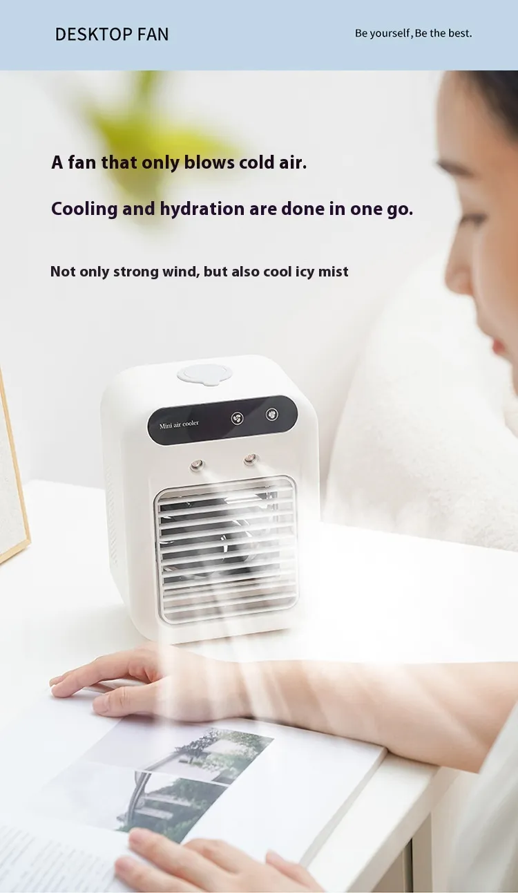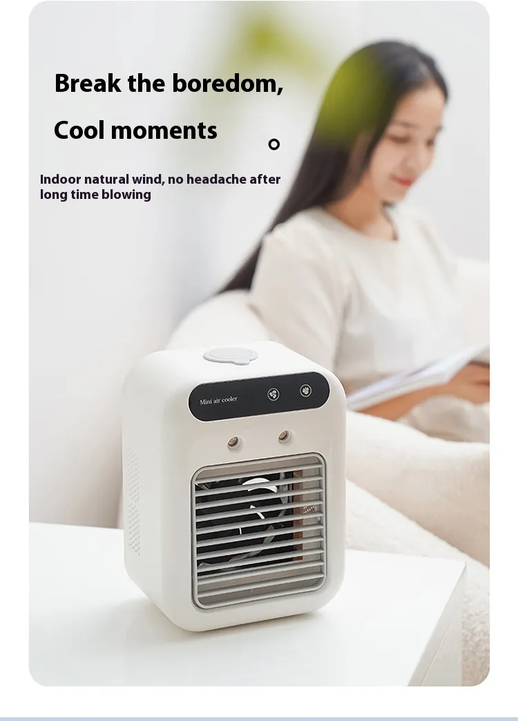 In conclusion, the Household Small Air Conditioner Fan Portable Spray Air Cooler is an excellent addition to any personal space, offering a blend of cooling, humidifying, and air circulation in a compact and portable design. Whether you're working from home, enjoying a good book, or simply relaxing, this device provides the comfort you need to stay cool and refreshed.