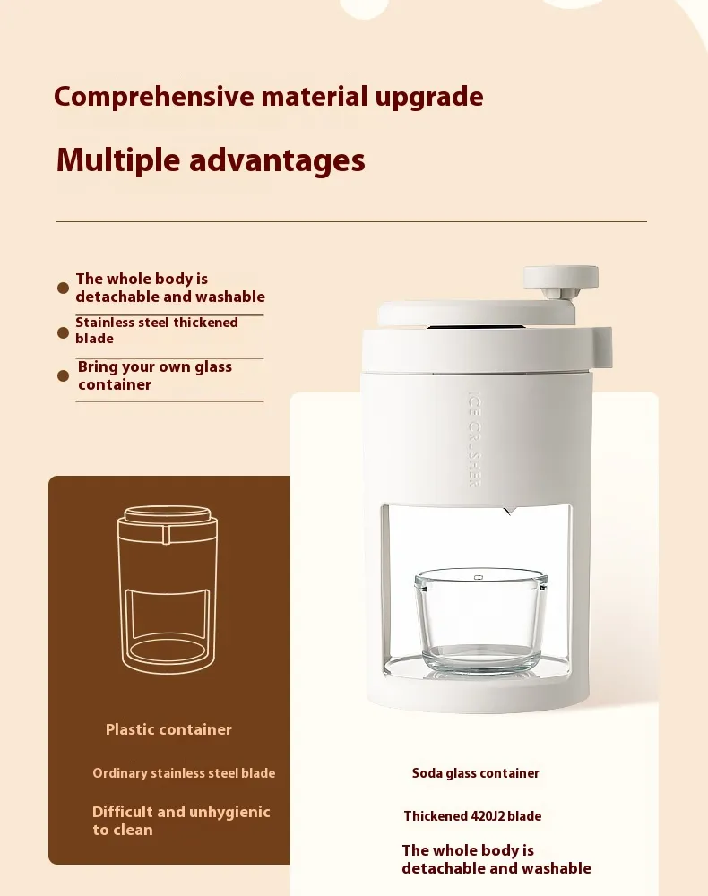 This versatile ice crusher is suitable for creating a variety of refreshing treats and drinks.
