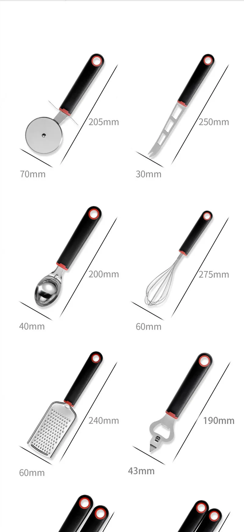 Color Classification Nine-piece kitchen utensils with black plastic handle Nine-piece kitchen utensils with green plastic handle