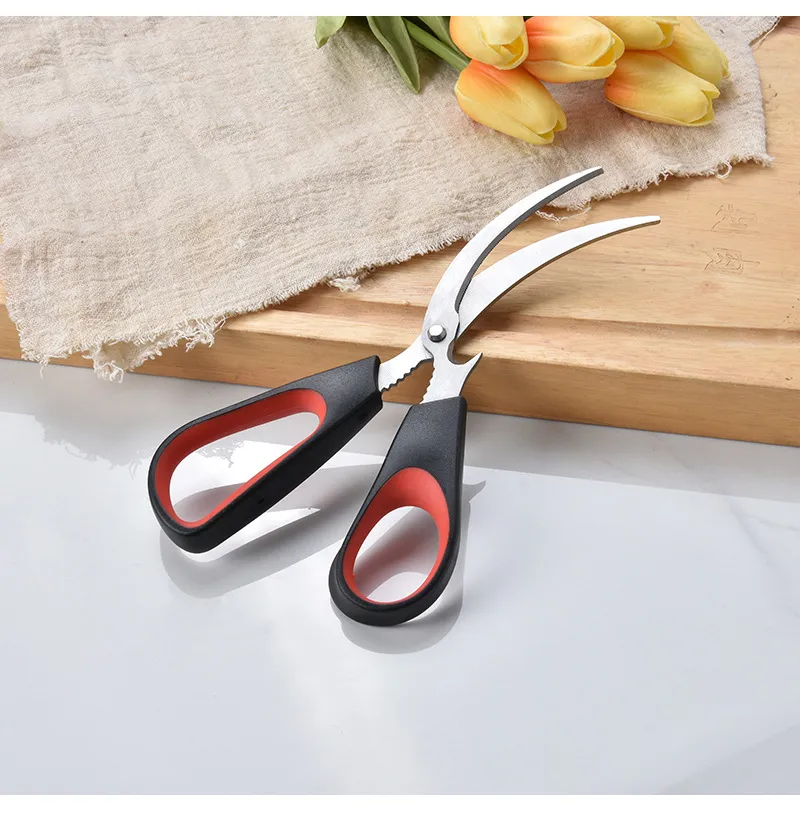 The Household Stainless Steel Seafood Elbow Scissors are the ultimate kitchen tool for precision cutting of seafood, shellfish, and a variety of other food items. Designed with a unique elbow shape, these scissors provide better leverage and control, allowing you to effortlessly cut through tough lobster shells, crab legs, shrimp, and more. The razor-sharp stainless steel blades are specifically engineered for heavy-duty use, making them perfect for tackling seafood with tough exteriors while maintaining precision for delicate cuts. Whether you’re a seafood lover or a culinary enthusiast, these scissors make food prep easy and efficient.