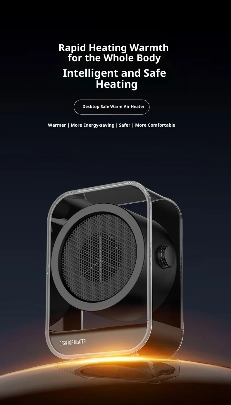Powered by high-efficiency heating elements, this portable desktop heater provides instant warmth within seconds. Its high-power motor ensures rapid heat circulation across your room, distributing warmth evenly to eliminate cold spots. The wide-angle airflow covers more space, making it perfect for small to medium-sized areas such as offices, bedrooms, or study corners.