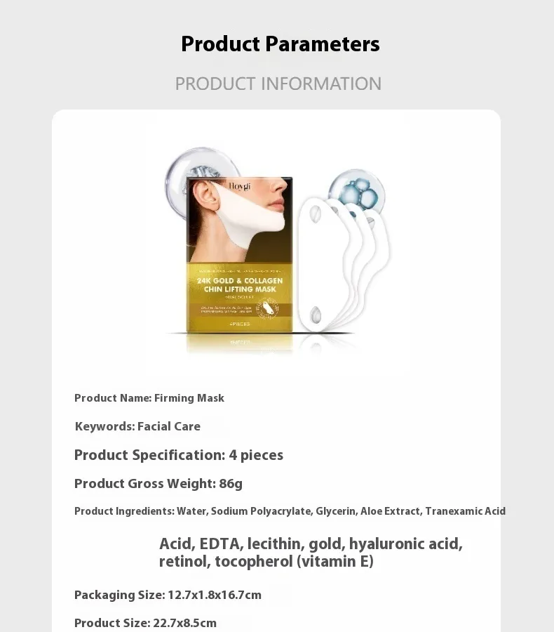 Hoygi chin lifting mask, 24K gold facial mask, collagen chin mask, anti-aging chin mask, hydrating lifting mask, retinol mask for wrinkles, hyaluronic acid chin mask, skin tightening chin mask, neck and chin rejuvenation mask