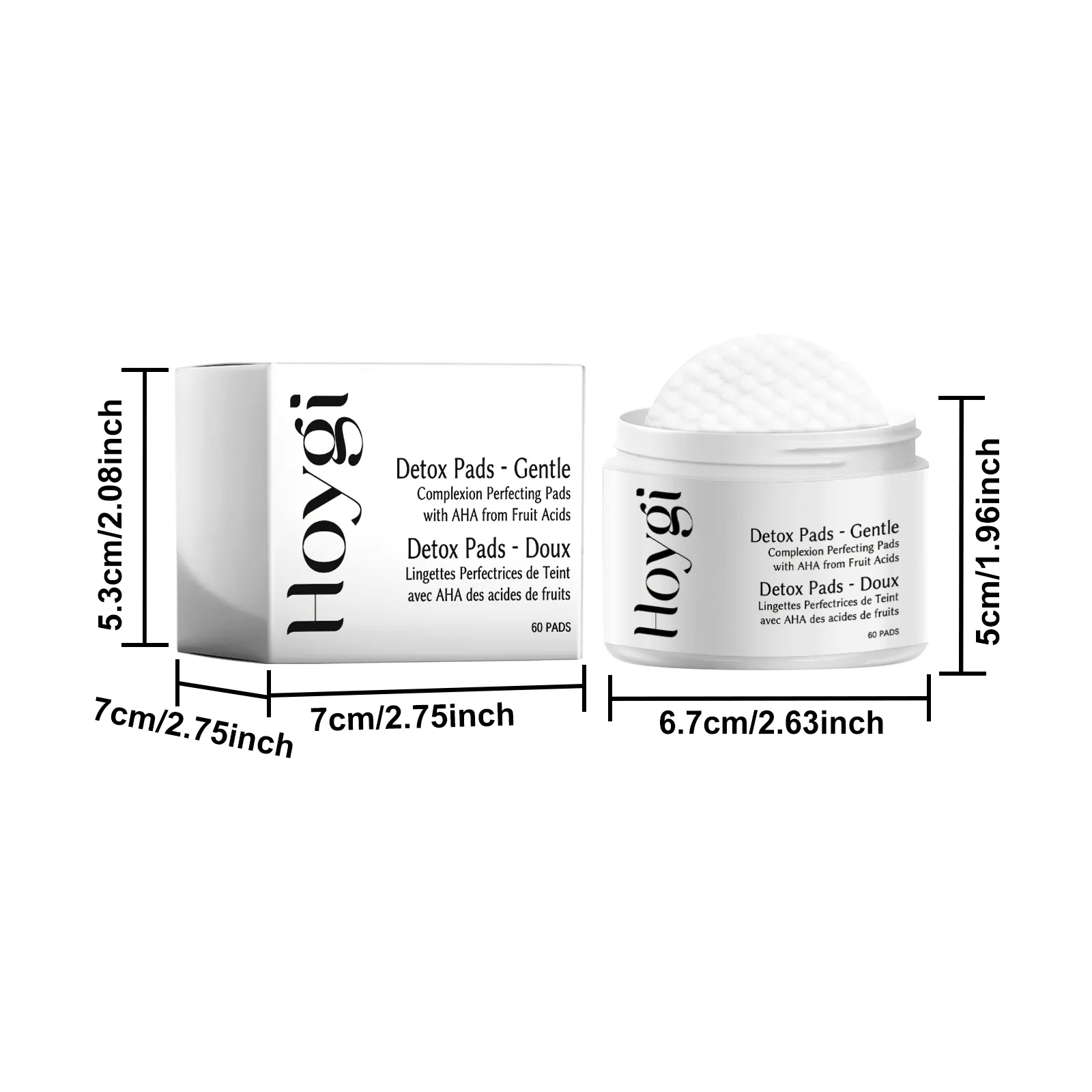 Detox pads, AHA exfoliating pads, gentle exfoliation, complexion-perfecting pads, fruit acid skincare, detoxify skin pads, skin texture refinement, pore-cleansing pads, sensitive skin exfoliant, skin renewal pads, Hoygi detox pads, glowing complexion pads.