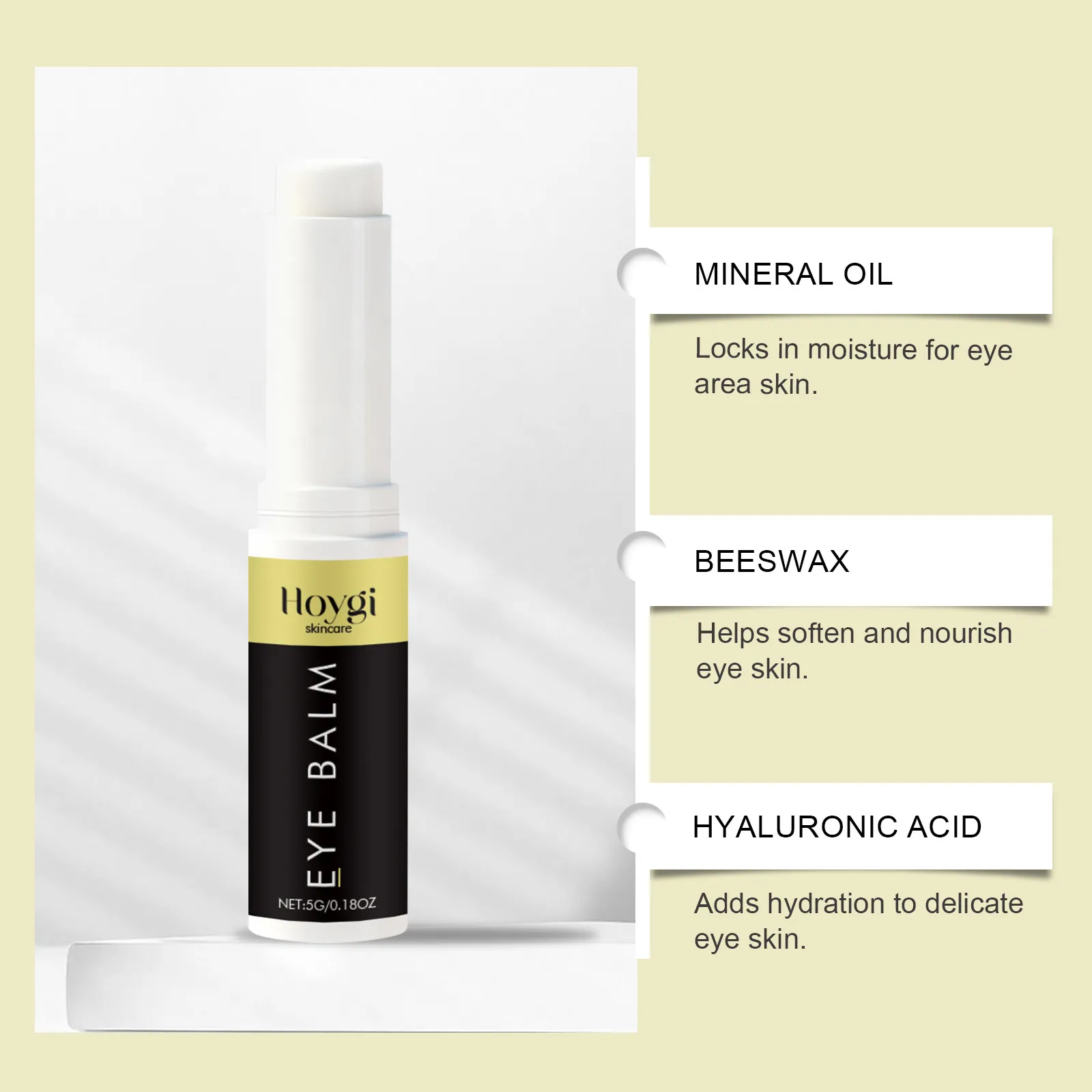 Hoygi Eye Balm, under-eye balm, reduce puffiness, dark circle treatment, anti-aging eye balm, fine line treatment, moisturizing eye balm, brightening eye balm, eye care stick, firming eye balm, hydrating eye balm, eye cream stick, skincare for eyes.